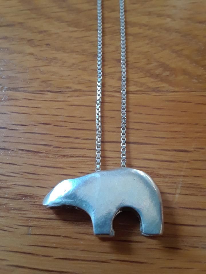 Sterling Necklace. 24 inch solid sterling chain with Bear pendant. Elgin west side pickup