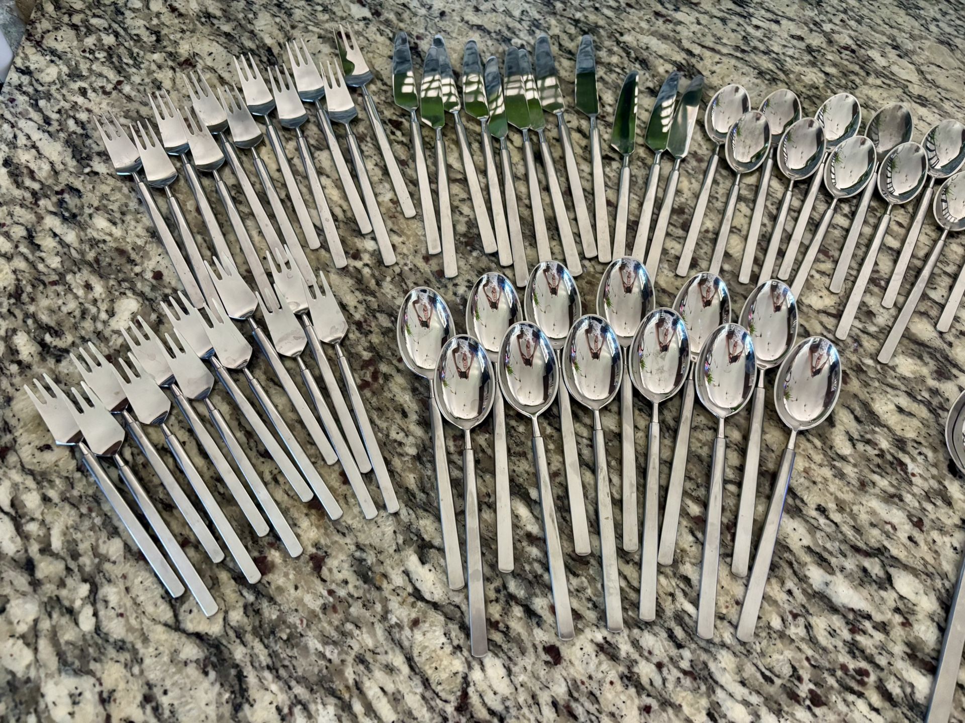 Copenhagen cutlery,Obelisk,Erik Herlow,vintage stainless flatware,64 piece set