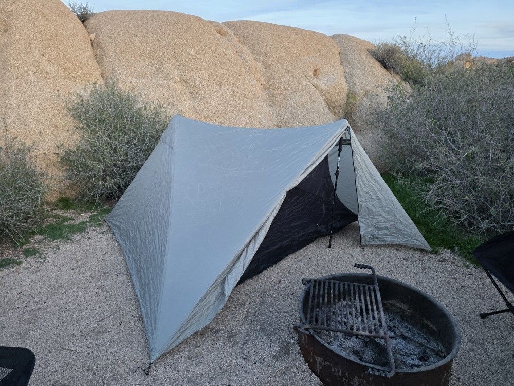 Used on a handful of camping trips. Great tent just preferred the solid version. Trekking poles not included.