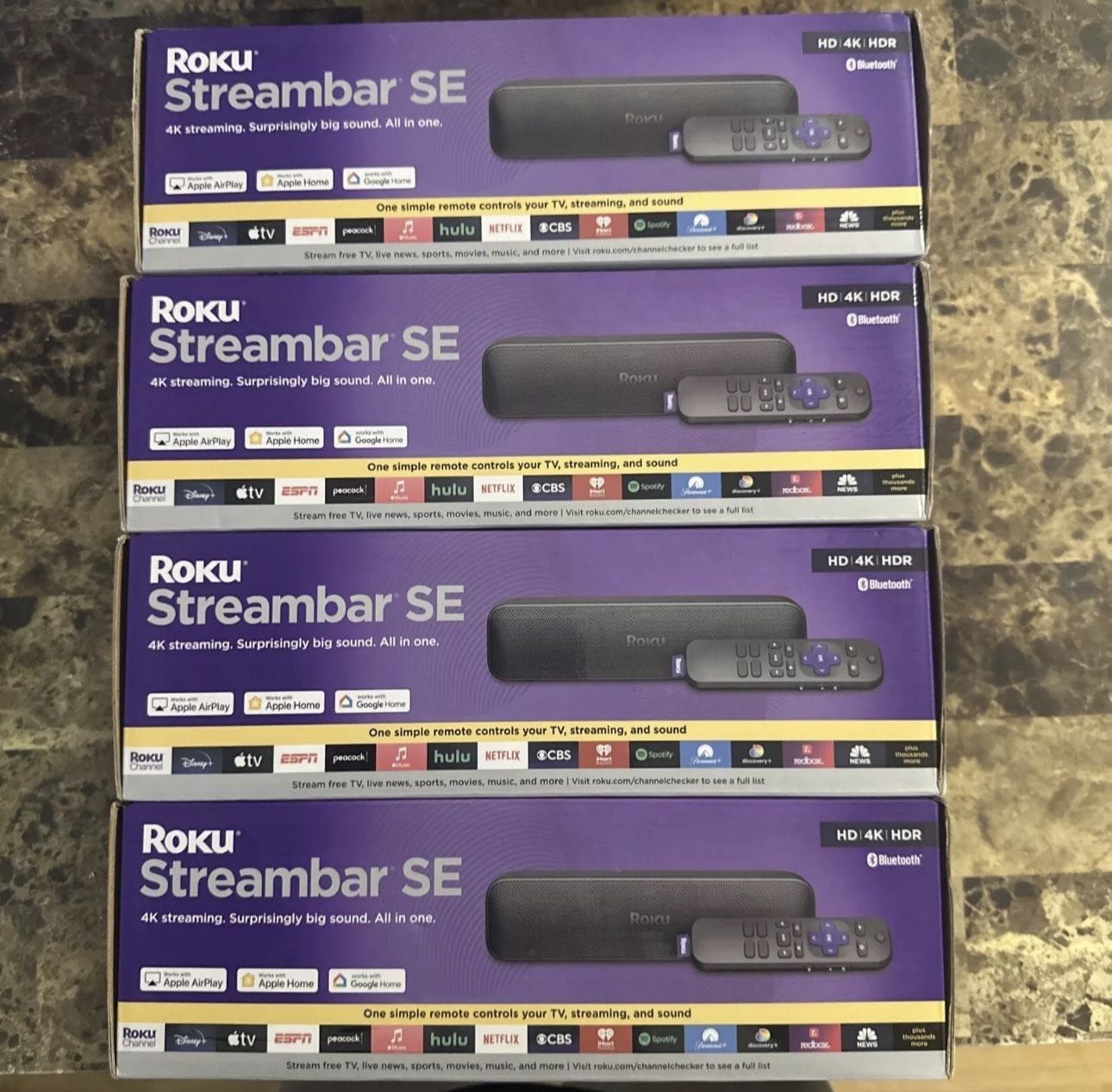 Supports all streaming services on Roku! 4K streaming. Surprisingly big sound. All in one. Perfect for smaller TVs: Enhance your bedrooms or cozy spaces with a 2-in-1 streaming and sound upgrade. Seamless streaming built-in: Enjoy an easy interface with apps that launch in a snap—all in brilliant 4K HDR picture optimized for any TV. No closed captions necessary: Hear every word with enhanced speech clarity. Sound upgrade: Elevate your TV’s audio with two premium speakers and a dedicated bass port for dynamic tones. Smarter than your average soundbar: Automatically adjust the volume to hear voices more clearly and lower during loud commercials. Try presets for music, movies, and more. Quick guided setup: Everything you need is included in the box. Just plug it into your TV and connect to the internet. It’s that simple. No more juggling remotes: Power up your TV, adjust the volume, and control your streaming all with one simple remote. Bluetooth your way: Pair headphones for quiet streaming or play music through your TV sound system. Easily expandable: Add rich depth and booming bass with Roku Wireless Bass subwoofer. Not compatible with Roku Wireless Speakers.