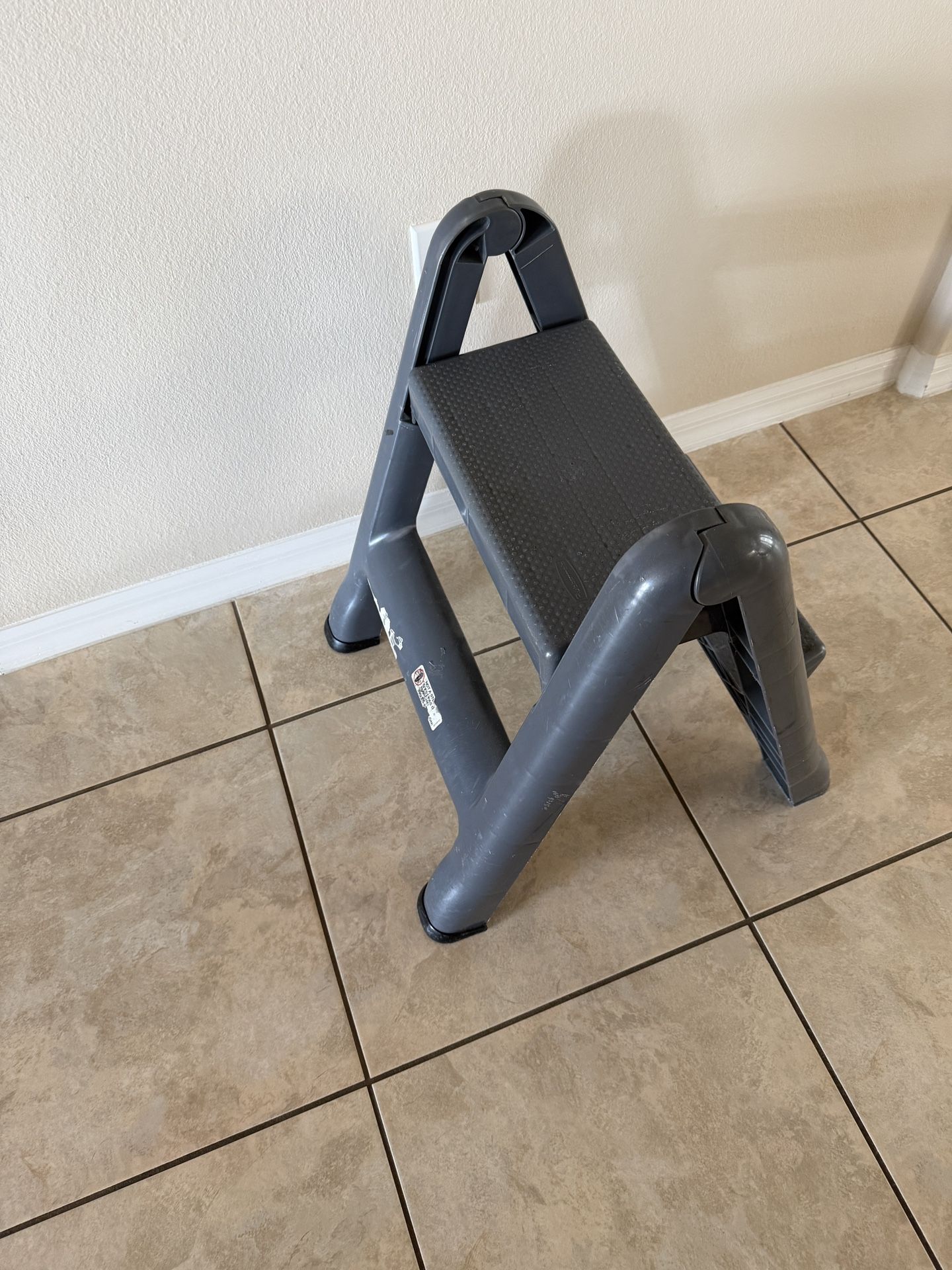 Rubbermaid Two-Step Folding Foot Stool 14-Inch High Gray 300-Pound Capacity Small Step Stool 21"D × 19"W × 23"H