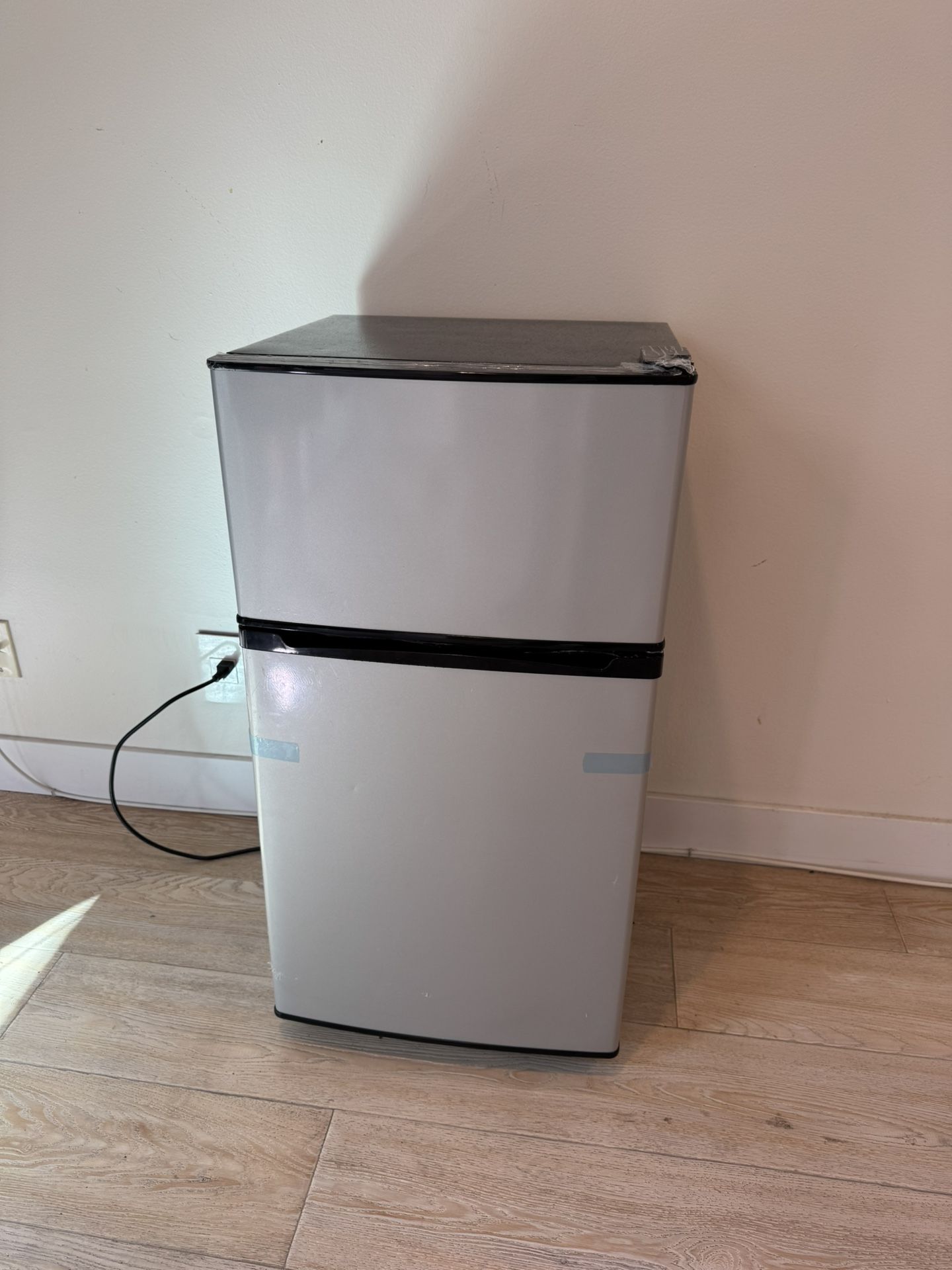 Stainless steel mini fridge/freezer. Works great. Just need it gone. Very light use. Still has original sticker/unopened manual/ ice cube tray.