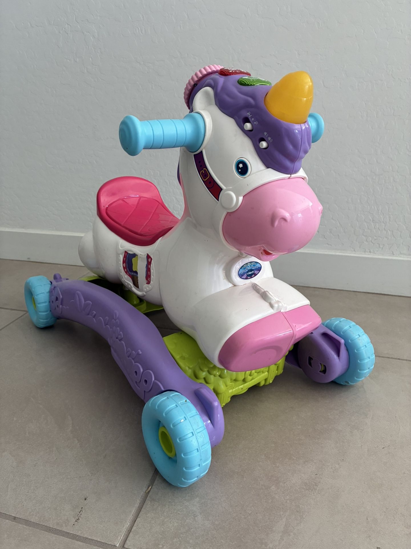 This toy can convert to a rocking horse. It comes with batteries in it. Queen Creek. The crossroads are Ocotillo and Crismon
