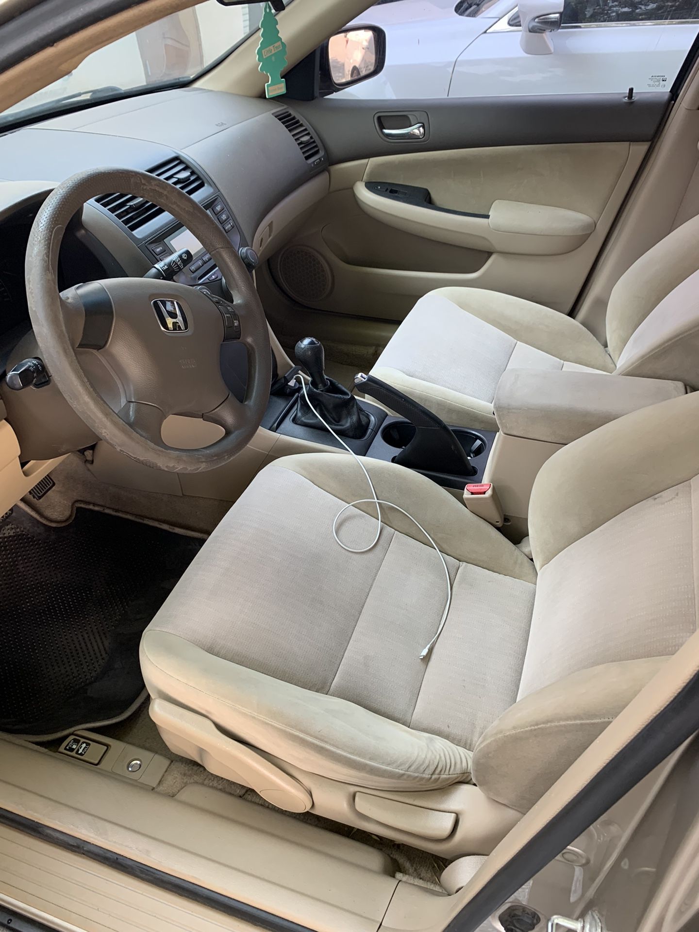 Got a Honda Accord 2003 stick shift 5 speed 4 cylinder great gas saver! 250000 miles Great interior Exterior is not perfect but not severely damaged No check engine light I Have proof of passed smog Only light on the dash is break light but the breaks do work Not in a rush to sell as the car does serve me well..so low ballers will be ignored 3500$ obo