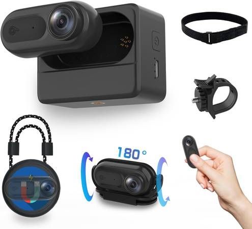 new Mini Body Camera 1080P, Wearable Body Cam with 180° Rotatable Clip and Magnetic Lanyard, 2500mAh Charging Case, IPX7 Waterproof Small Body Camera for Pets, Swimming, Travel, Work-Black (VD02-Black) About this item [IPX7 Waterproof & Underwater Shooting] This compact camera boasts an IPX7 waterproof rating, meaning it can shoot underwater up to 2 meters deep! Perfect for outdoor enthusiasts, water sports, or capturing unique underwater moments without worrying about water damage. [Full HD 1080P Video Recording] Capture stunning, high-quality footage with crisp 1080P video recording. Whether you're recording nature, outdoor sports, or precious moments with family and pets, expect sharp and clear video that’s easy to share. [64GB Built-in Storage & Auto Loop Recording] With a generous 64GB built-in memory card, you can store hours of videos without constantly worrying about running out of space. With automatic loop recording, you’ll never run out of space, as older videos are automatically overwritten, ensuring continuous recording without interruption. [Long-lasting Power & Convenient Charging] The camera comes with a separate 2500mAh high-capacity charging compartment that supports quick and easy charging for the 400mAh camera. Never worry about battery life, as you can charge the camera on-the-go for continuous use during outdoor adventures.