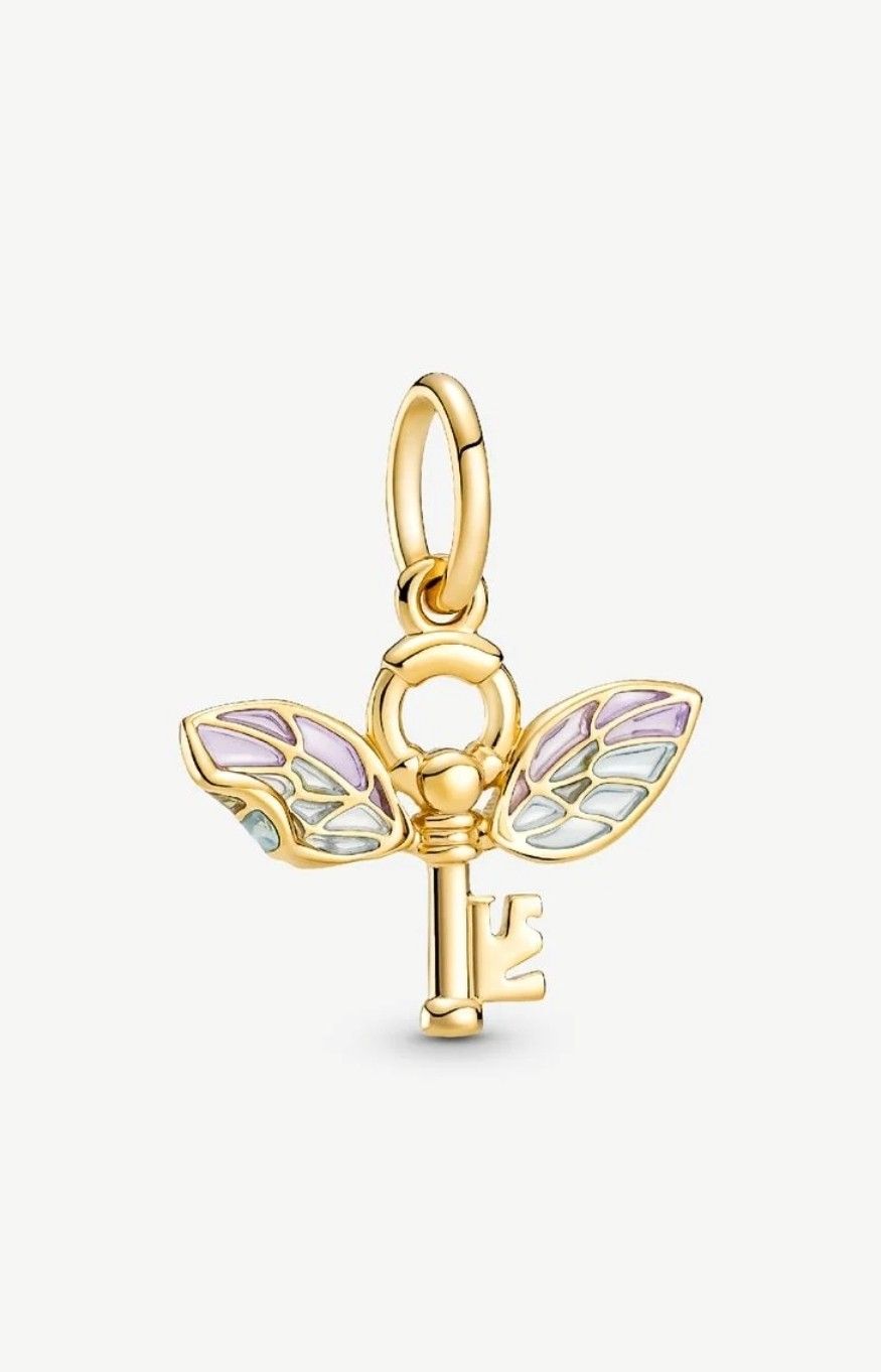 Inspired by the enchanted flying keys that guarded the Philosopher’s Stone, this Harry Potter, Winged Key Pendant is made up of a 14k gold-plated key with wings that are decorated with colourful enamel. The wings have been finished with a plique-à-jour enamelling technique, creating a translucent effect that allows light to pass through the pendant. Set with a brilliant-cut cubic zirconia placed on the edge of the piece, the key’s detailing even includes the broken wing that allows Harry to catch it. Charm only bracelet is sold in separate listing