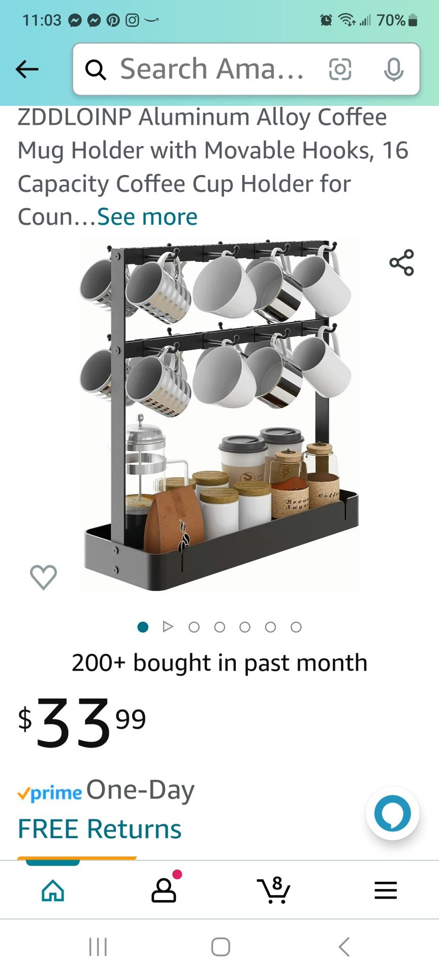 New Coffee Mug Holder with 16 Movable Hooks, Metal Coffee Cup Holder for Countertop, 2 Tier Mug Rack