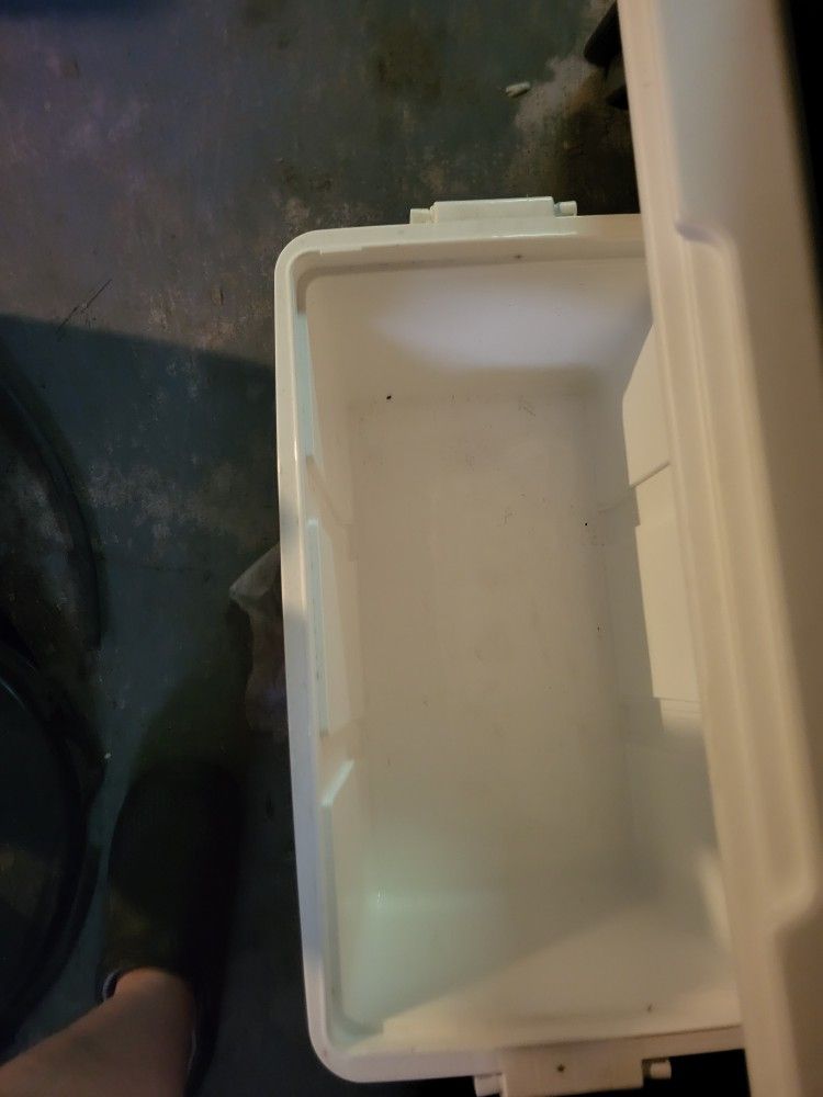 New cooler $15 chair on casters $15, tray tables $5 each, books $5 each.