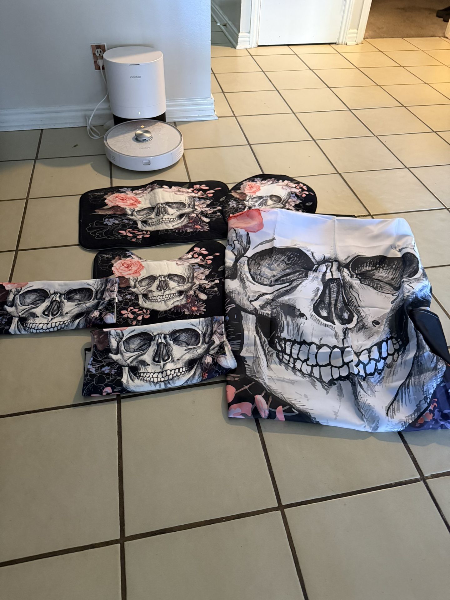 Six Piece Skull And Flower Set For Bathroom