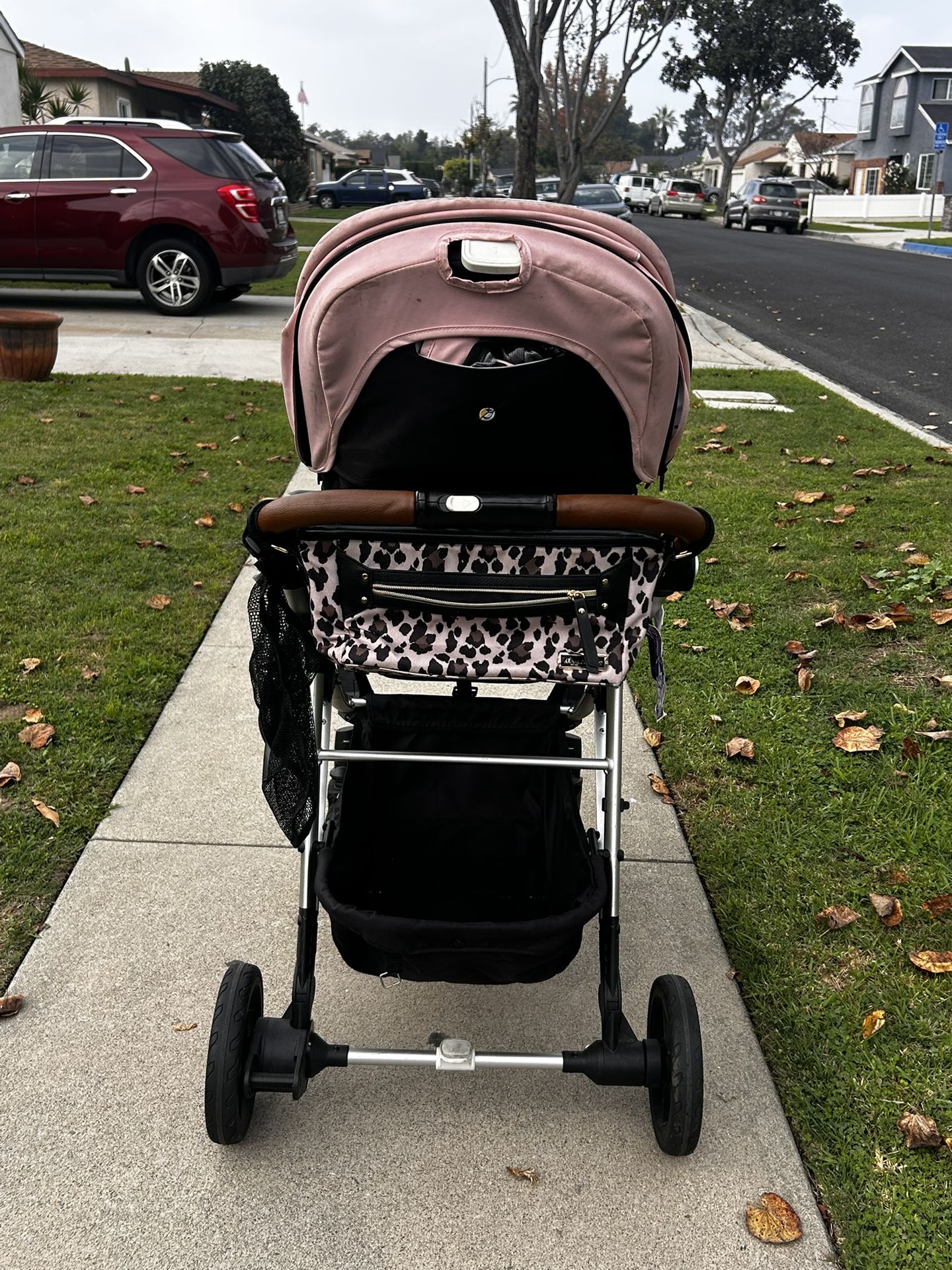 Used single to double attachments Also includes older child roller seat system Includes removable seat pads and carier system for chico car seats