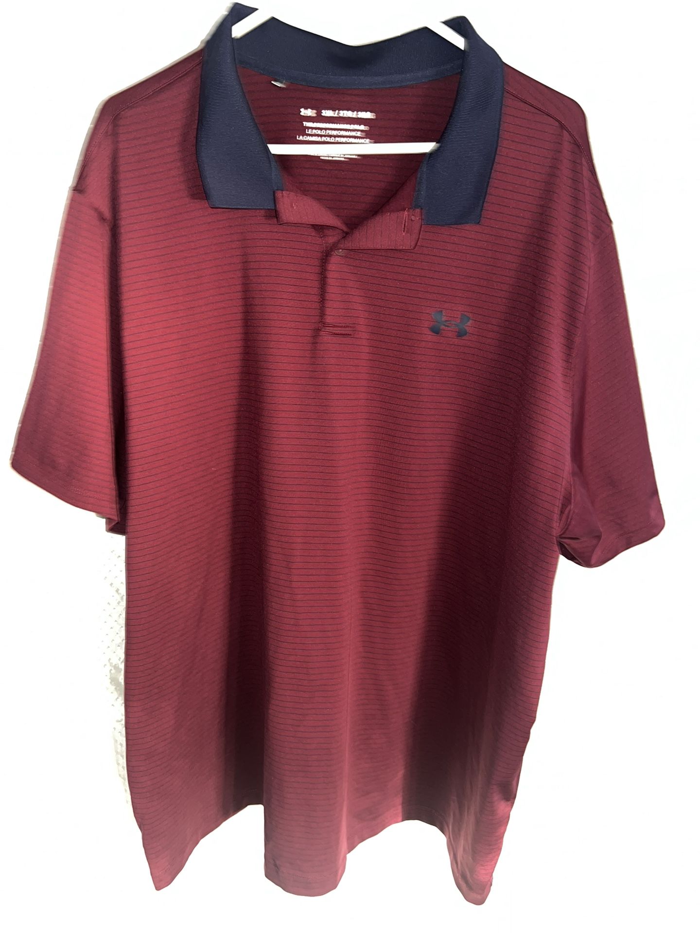 Burgundy under armour polo, no holes or stains