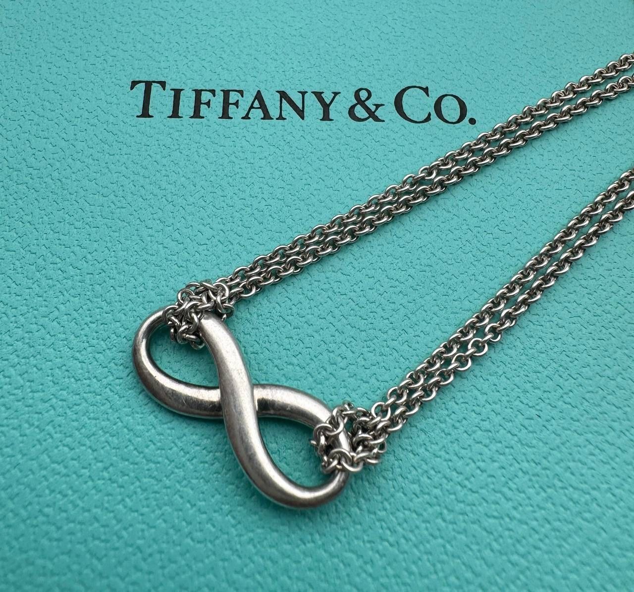 This gorgeous Tiffany and Co necklace double row chain is made of 925 sterling silver with infinity pendant.πππ Size: 16.00 inches length and Chain is solid inside. Total weight: 6.20 gramsβ¨. Comes with original beautiful Tiffany box π³π¦Very beautiful and stylish. Popular design. The best choice for you! Perfect gift! β€οΈππ We buy Rolex and Audemars, patek . Do layaway in VIP PAWN Coral Springs π₯ππΈ