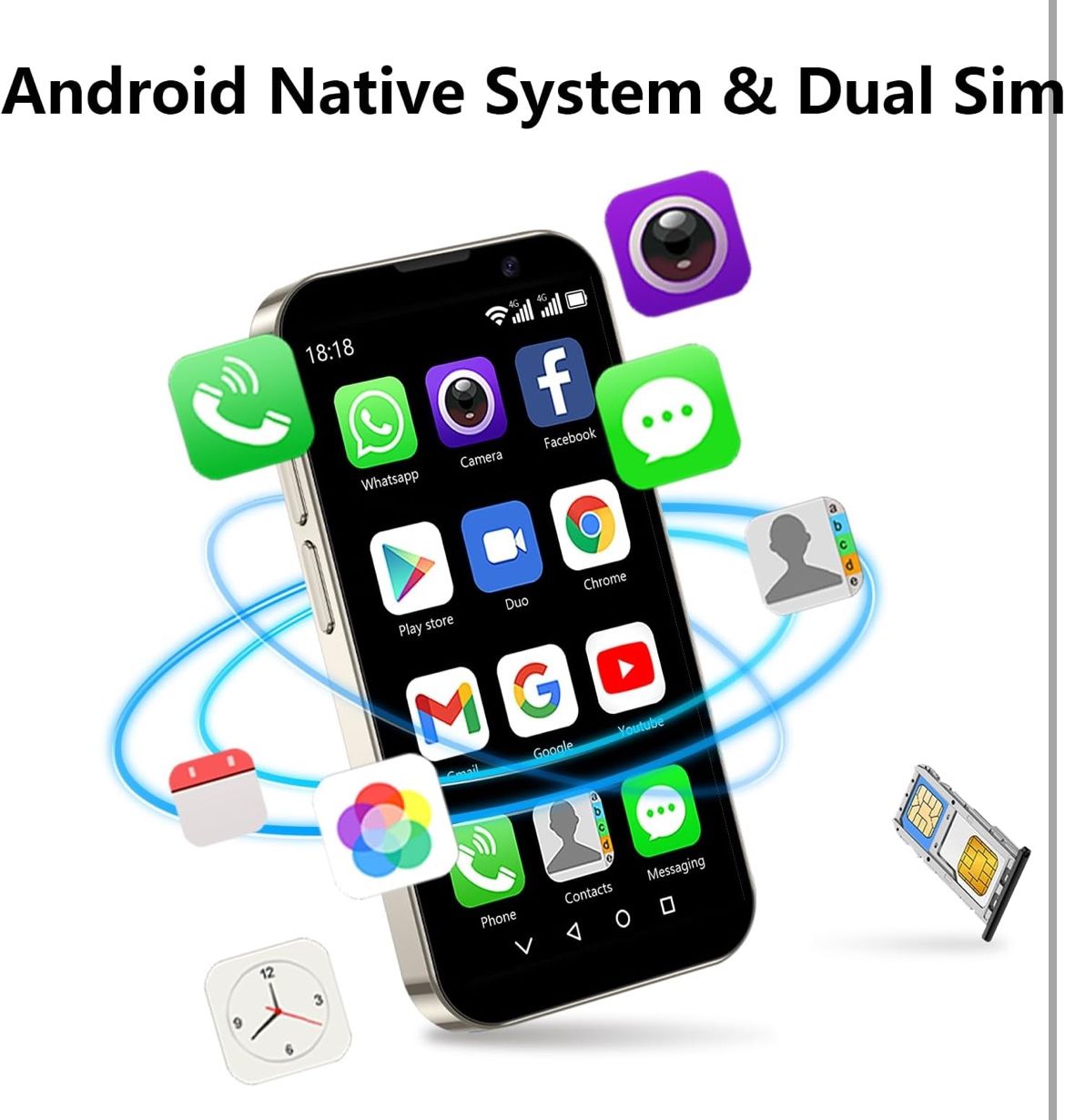 New In Box Mini Phone World's Smallest3.0"HD Touch Screen Mini Smartphone Unlocked Android Compact Mobile Phone for Kids&Students Cell Phone wih Quad-