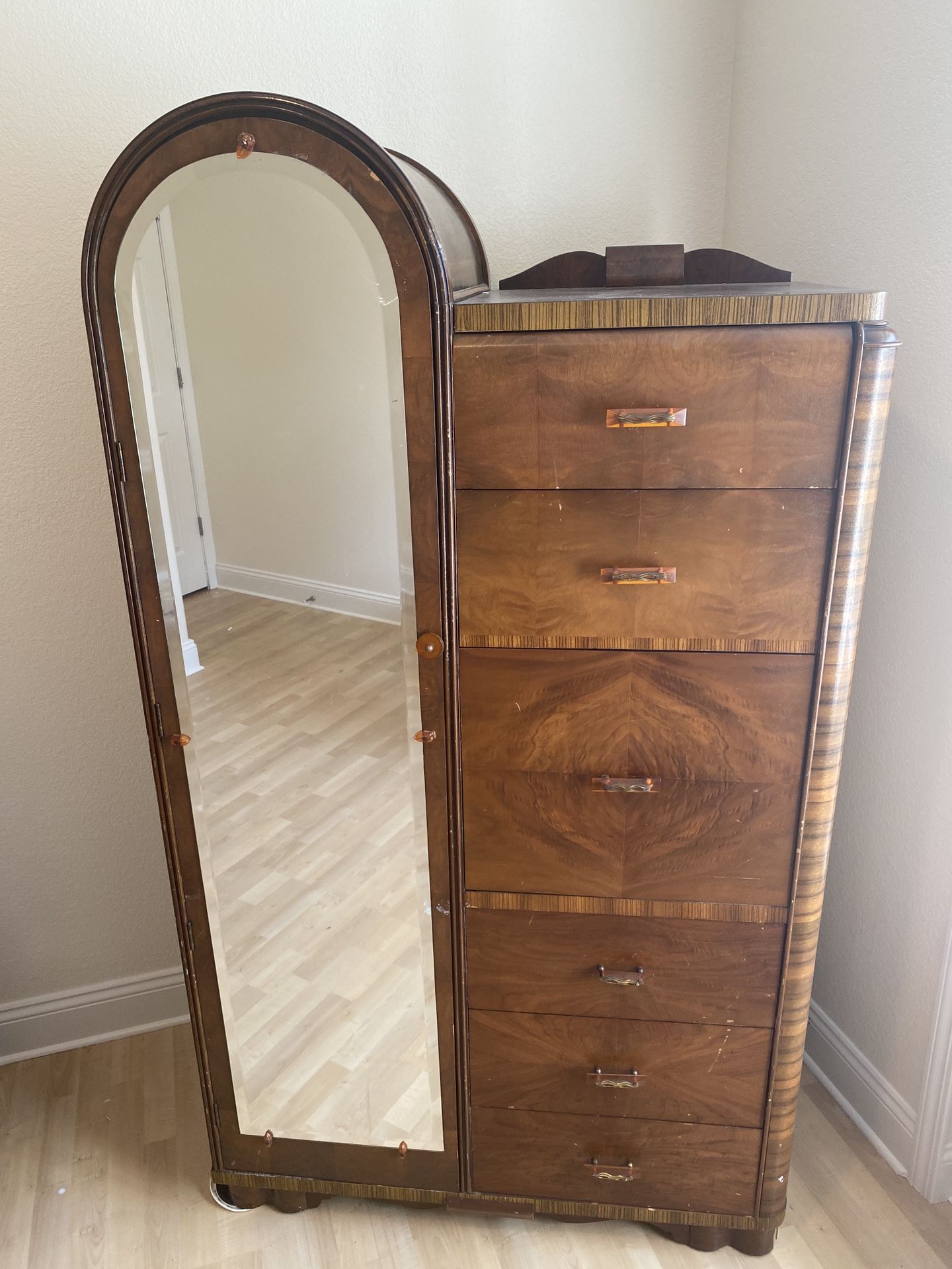 Antique- Wardrobe- Art Deco 1930s or 40s - cedar lined It could use a little TLC but is in really good shape. Heavy and sturdy. They don’t make them like this anymore. Serious inquires only please. This a very very rare item. 39” wide 24” deep 70” tall If you want it, bring a friend to help load. It’s heavy.