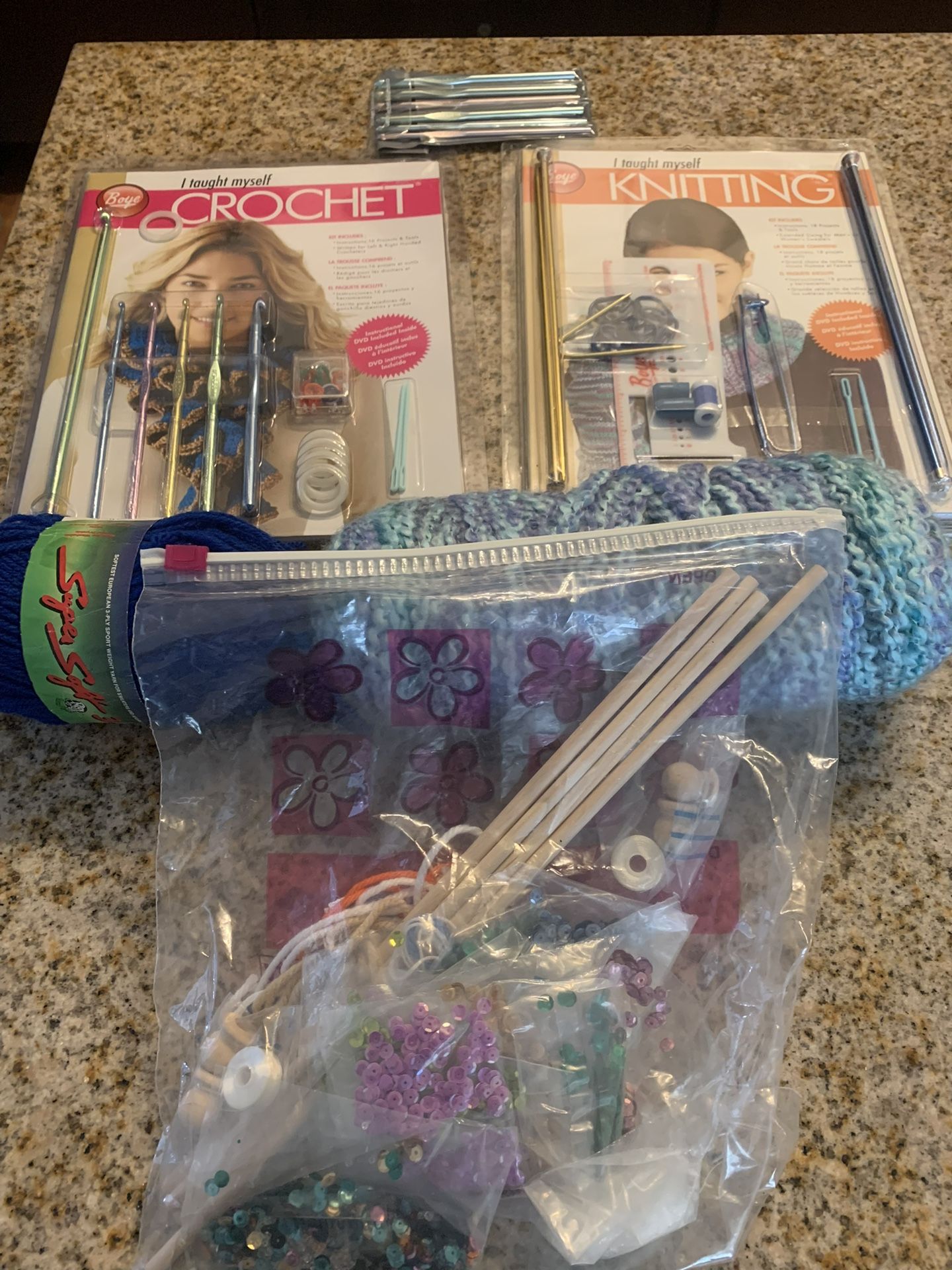 Knitting And Crochet Self Teaching Kits 2 Kits