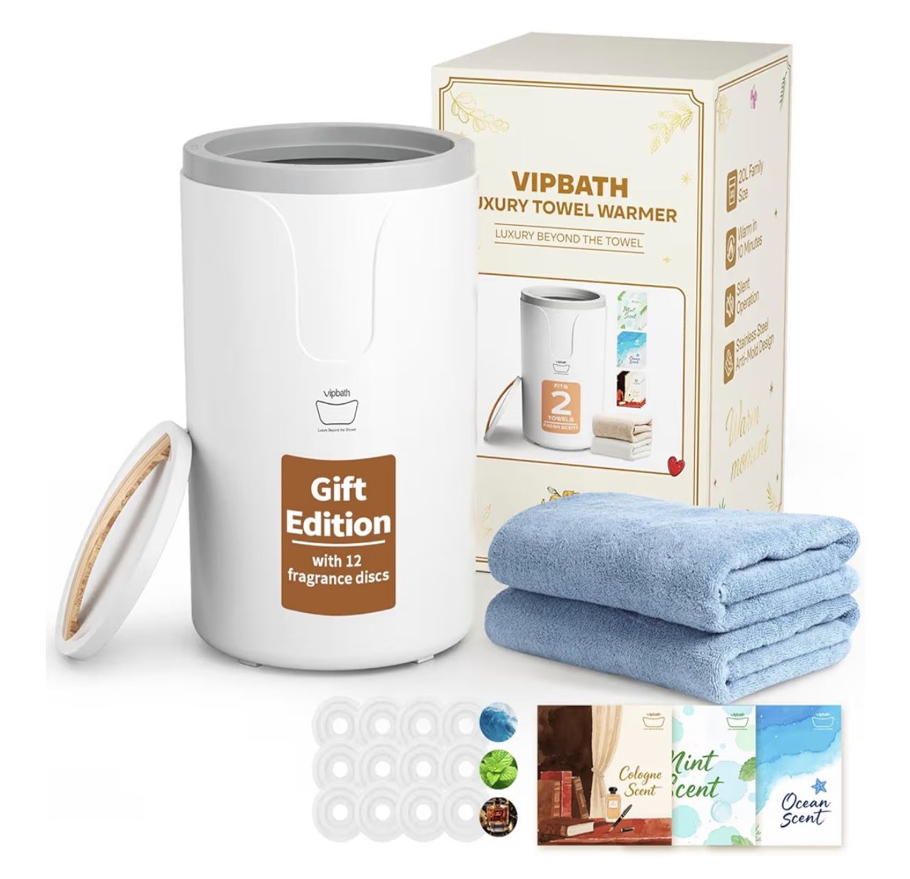 20L Luxury Towel Warmer Gift-Ready Box, Dual Heat, 30/60/90 Min Presets, Stainless Steel Interior, Tip-Over Auto Shut-Off, Includes 12 Fragrance Discs, Perfect Spa Gift for Home & Bathroom
