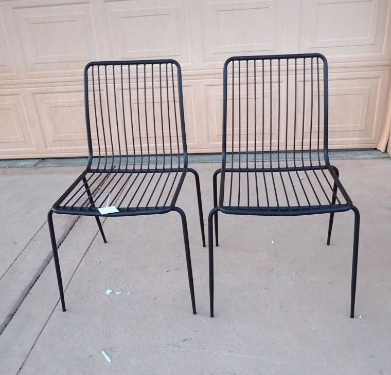 New - Pair of black metal chairs, perfect for outdoor or indoor use. - Dimensions 32.5" h x 31.5" w x 31.5" d