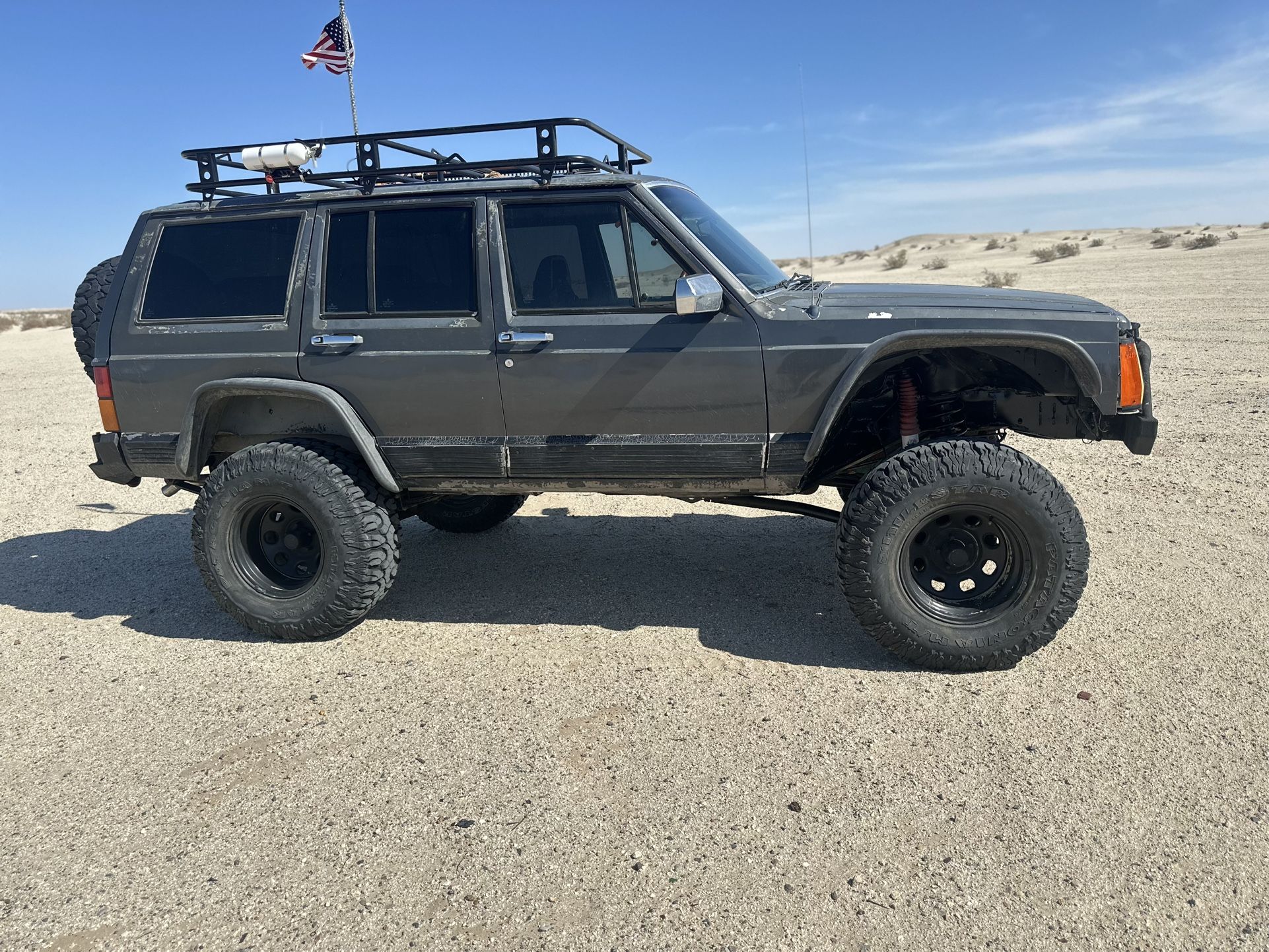 Xj roof rack that’s heavy duty one piece. It has tie downs for a spare tire and a whip/antenna mount.