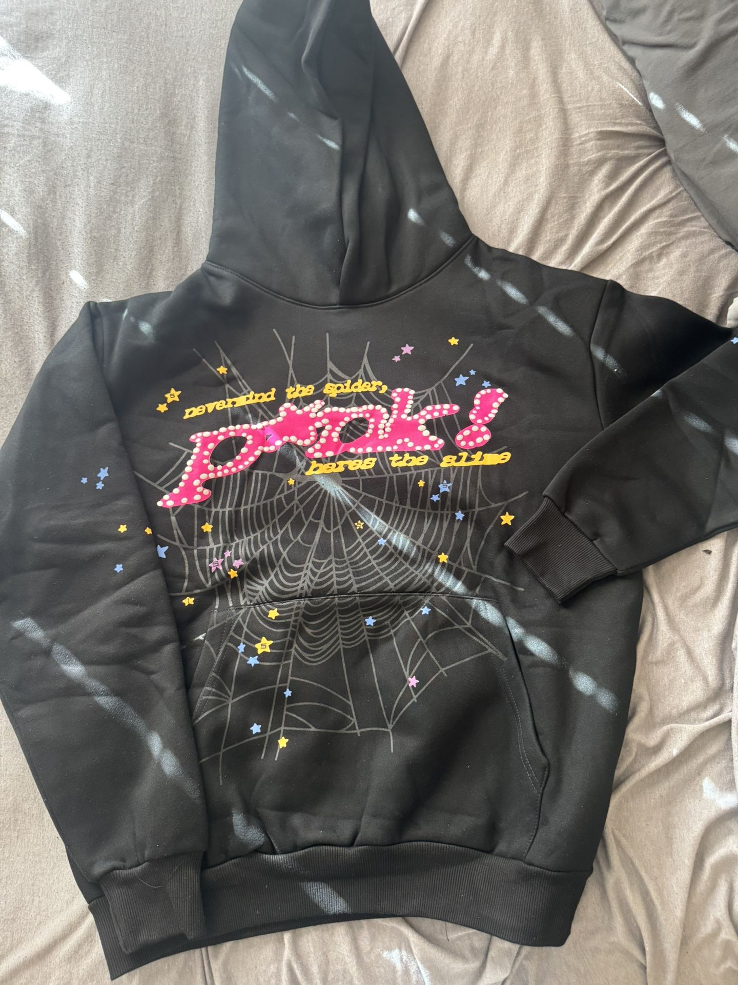 M Size - Sp5der Hoodie Black pink Sp5der hoodie with web design. Good condition, no major flaws. Soft and comfortable. ACCEPT OFFERS!!!