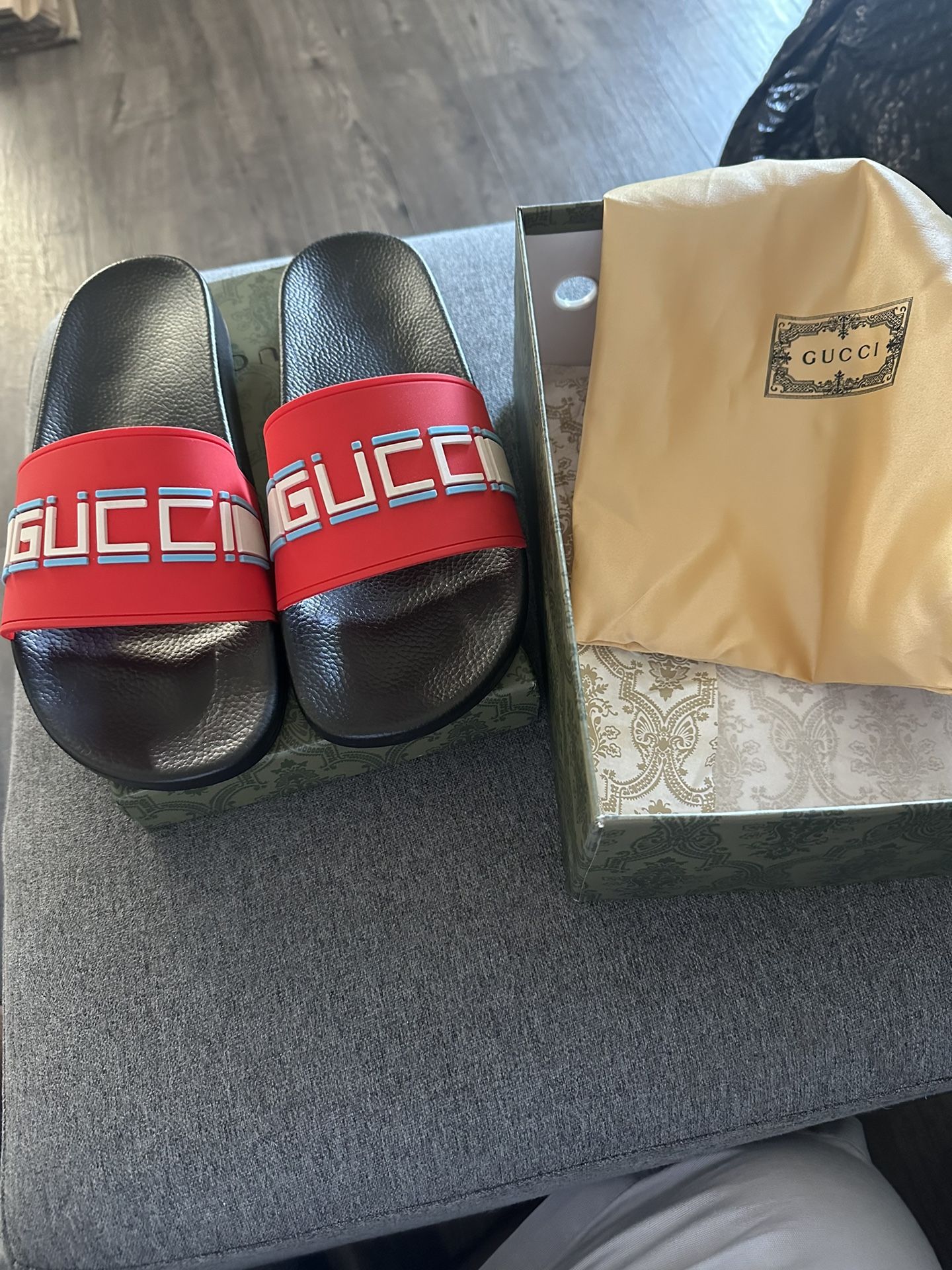 Brand new mens Gucci slides size 12.. $200 OBO Located in Modesto CA