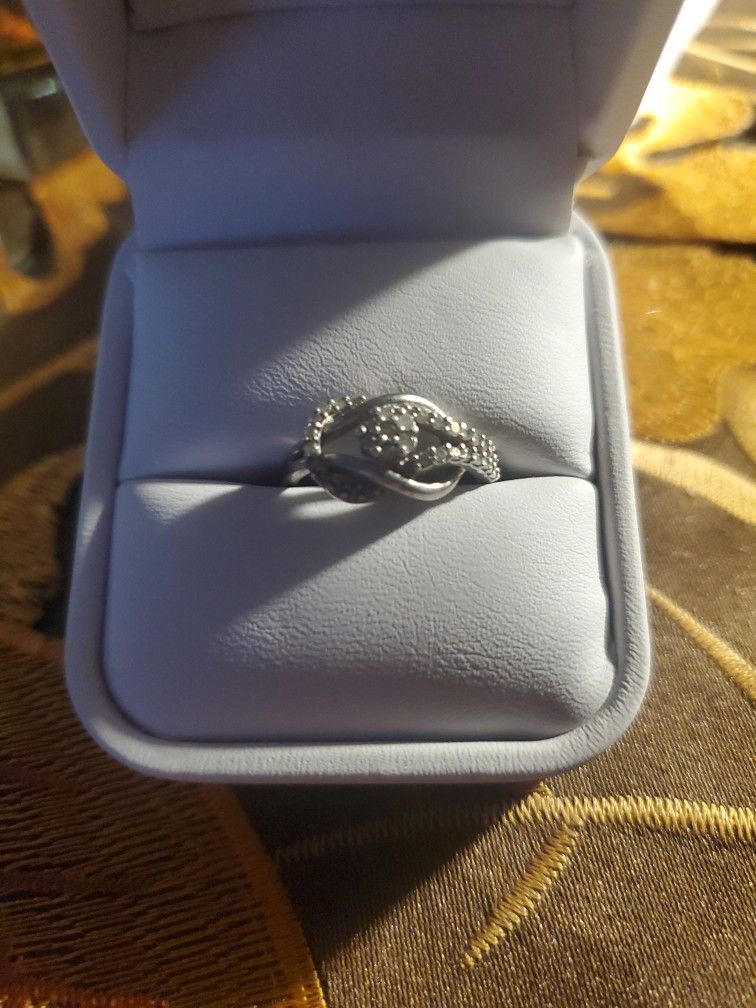 Real sterling silver and diamond. Not sure diamond weight. Ring is a size 7.