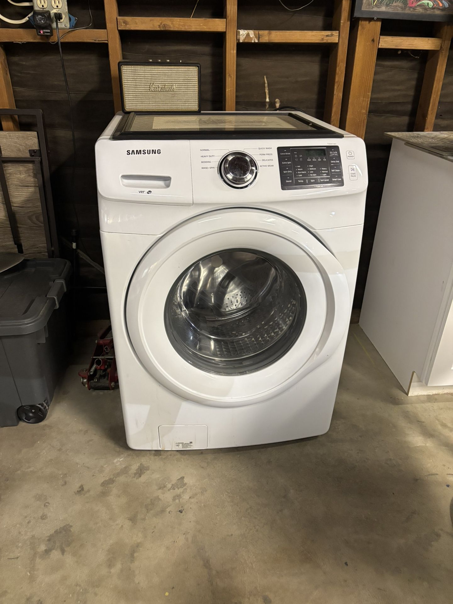 Front face Washer for sale Samsung. Had it for about 2 years and a half and it started leaking a little bit from the bottom. That’s why it reflects the price. I don’t have time to fix it. Work’s great washes clothes really good.