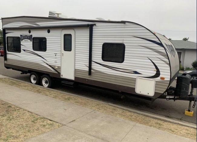 REDUCED: 2016 Wildwood toy hauler for sale. Roughly 30ft (with tongue). At the rear: happijac hydraulic full bed, benches below have been removed. At the front: queen size bed (sleeps 2). Automatic awning, electric tongue, electric levelers. No leaks. This unit has not been lived in.