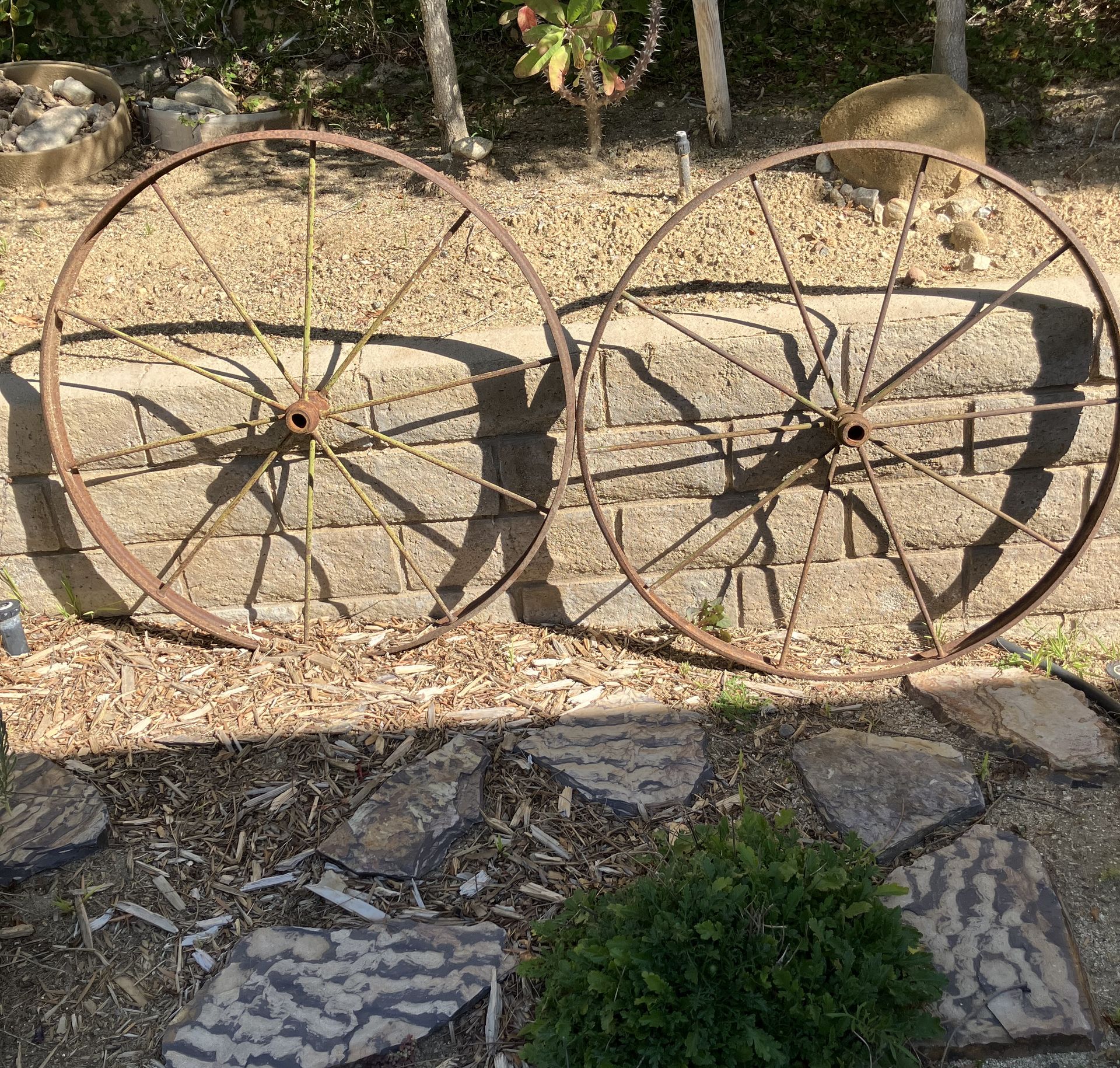 Rescued from a fire. These were the wheels attached to a garden wagon. The wagon had a Sears tag on the axle. So over 100 years old.