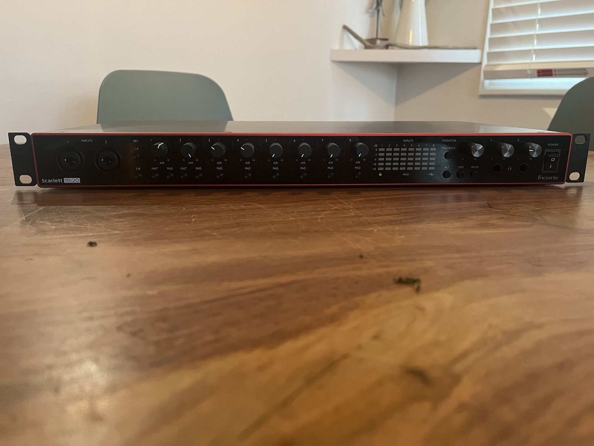 Very lightly used 8 mic preamps, 18 inputs, and 20 outputs, it supports 24-bit/192kHz resolution for professional-grade recording and mixing IEC power cable and USB C to USB A cable included