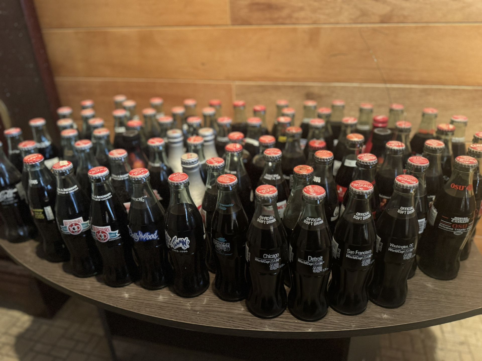 collectors coca cola bottles from 1980’s, 90’s, and beyond.