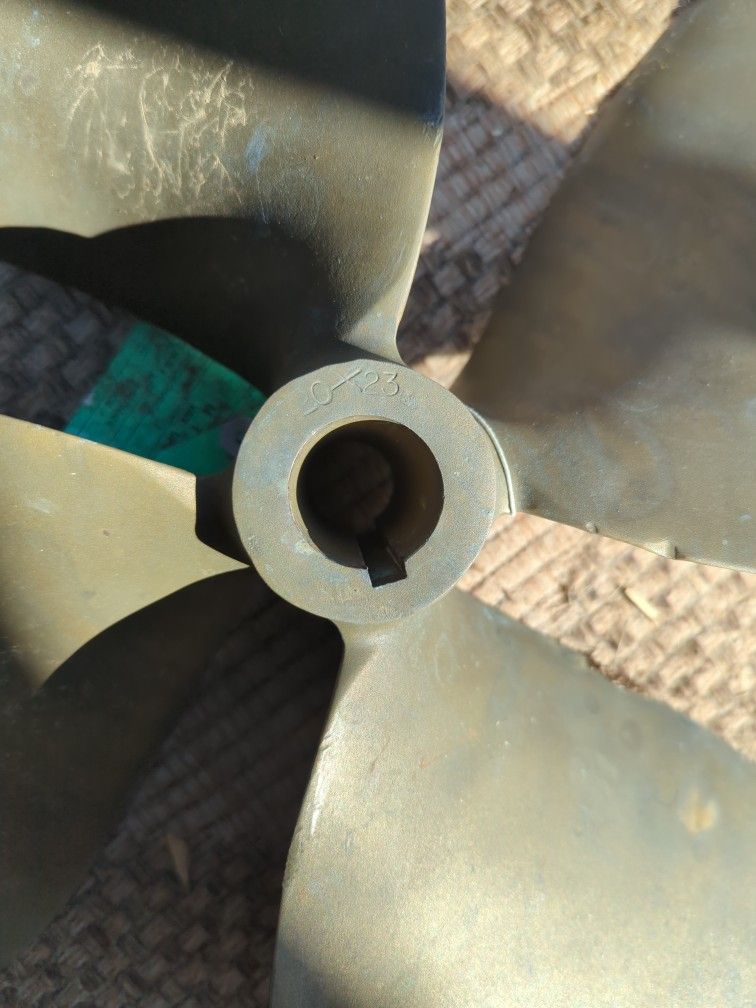 Came from a Chris Craft, 1 1/2" shaft. In good condition, no chips. I will post a picture after cleaning it up a bit. NOTE: picture is from the L.H. prop. It's bent beyond repair. Yes, we are keeping it...