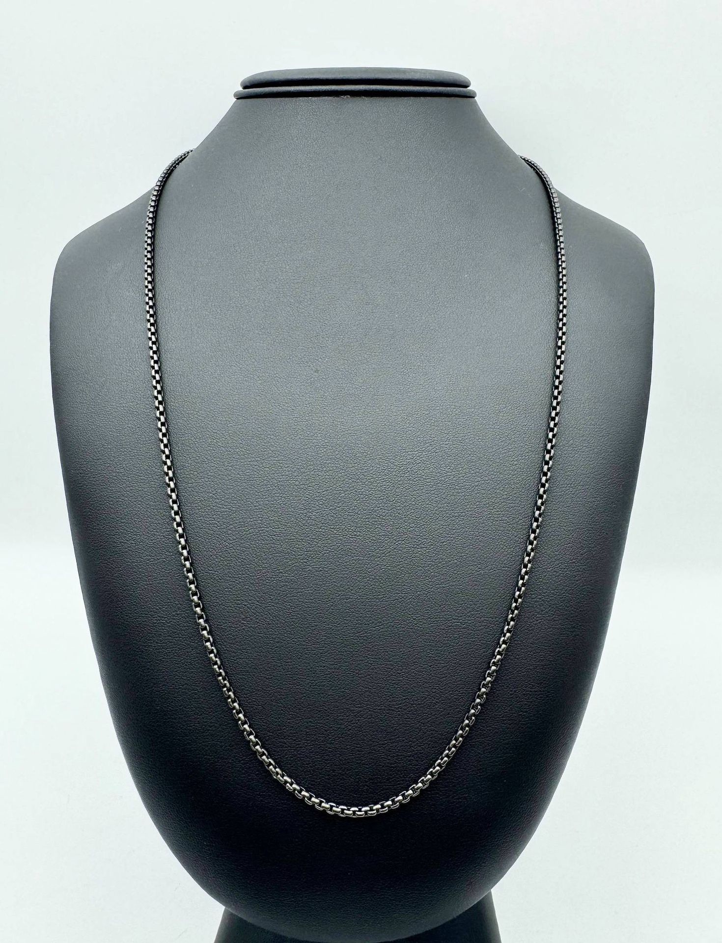 This sleek and modern David Yurman box chain necklace is crafted from high-quality stainless steel with a sophisticated black PVD coating π giving it a bold, contemporary look π₯π Condition is like new π¦ Size of the chain: 26 inches length, 2.7mm width. Make it perfect for wearing alone or layering with pendants π We buy Rolex and Audemars, Patek. Do layaway in vipawn Boca Raton π₯ππΈ