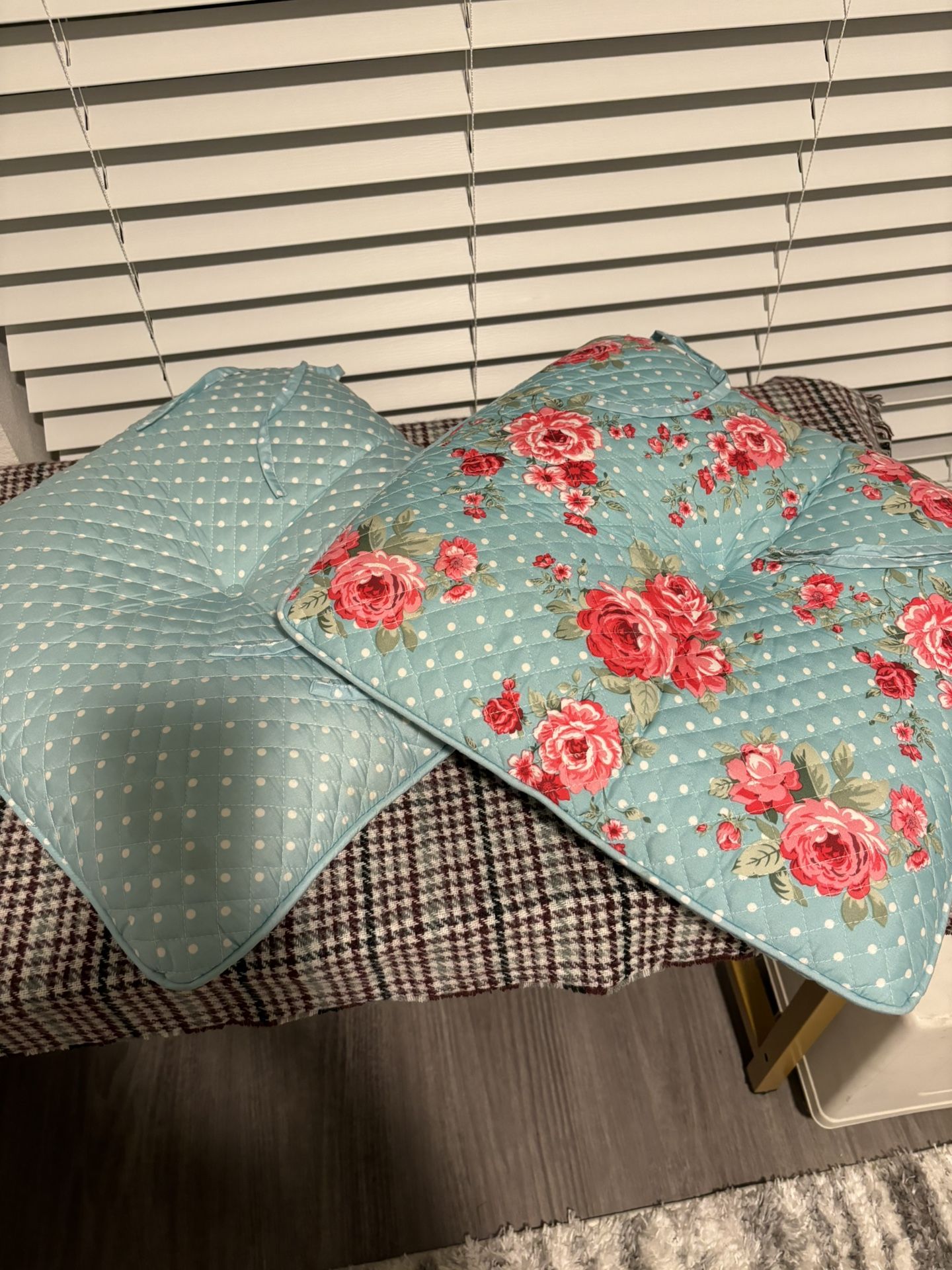 Gently used 4 reversible chair cushions and matching reversible table runner (never used). Cash only Pick up in East Ventura
