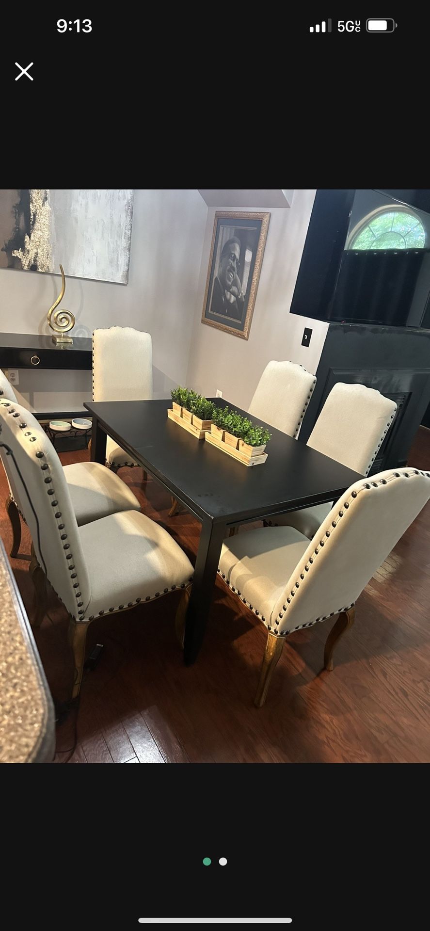 All pieces are in excellent condition. Comes with table with extension , and 6 chairs