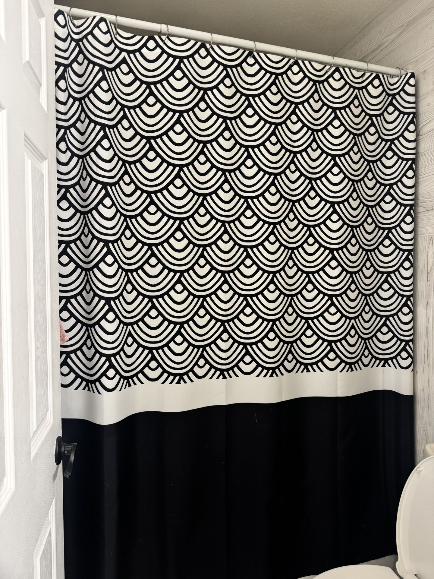 Art deco style shower curtain and matching bath mats $20 OBO for all 3 pieces. Local pick up in Mira Mesa only.