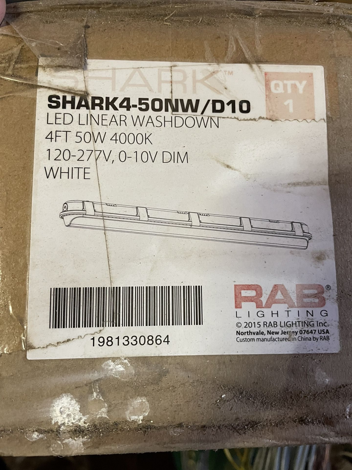 Sealed fixture left over from new barn construction job where these were installed in the wash rack area of the barn. Retail for $368. RAB SHARK4-50NW/D10 Quick Mount/Surface/Stainless Steel Spring Clips Linear LED Washdown Fixture 50 Watt 4 ft 120-277 Volt Polyester Powder-Coated White Electrical contractor clearing out our warehouse of new old stock.
