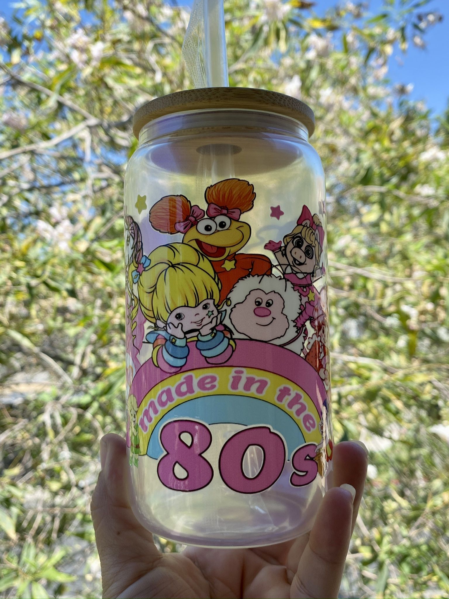 Glass cup 16oz UV DTF cup wrap Includes lid and straw