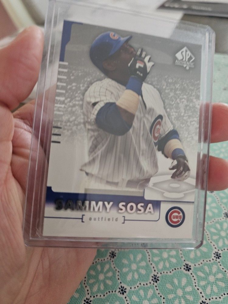 Chicago Cubs Sammy Sosa 04 Upper Deck SP Authentic Baseball Card in NM Condition Sammy Sosa '99 Upper Deck Collectors Choice Cover Glory Insert Card in NM Condition Sammy Sosa '00 Topps Stadium Club Card in NM Condition Sammy Sosa '94 Fleer Baseball Card in NM Condition Andre Dawson '92 Score Baseball Card in NM Condition Aramis Ramirez 08 Upper Deck Baseball Card in NM Condition Carlos Zambrano 08 Upper Deck Spectrum Baseball Card in NM Condition Ryan Theriot 08 Upper Deck Baseball Card in NM Condition Ted Lilly 07 Topps Allen & Ginters Card in NM Condition Greg Maddux 04 Upper Deck SP Authentic Baseball Card in NM Condition Kerry Wood 03 Fleer Authority Baseball Card in NM Condition Kerry Wood 01 Fleer Geniune Card in NM Condition 2 Alfonzo Soriano 07 Bowman Gold Parallel Baseball Cards in NM Condition Cards will come in Penny Sleeves only FIRM ON THE PRICE