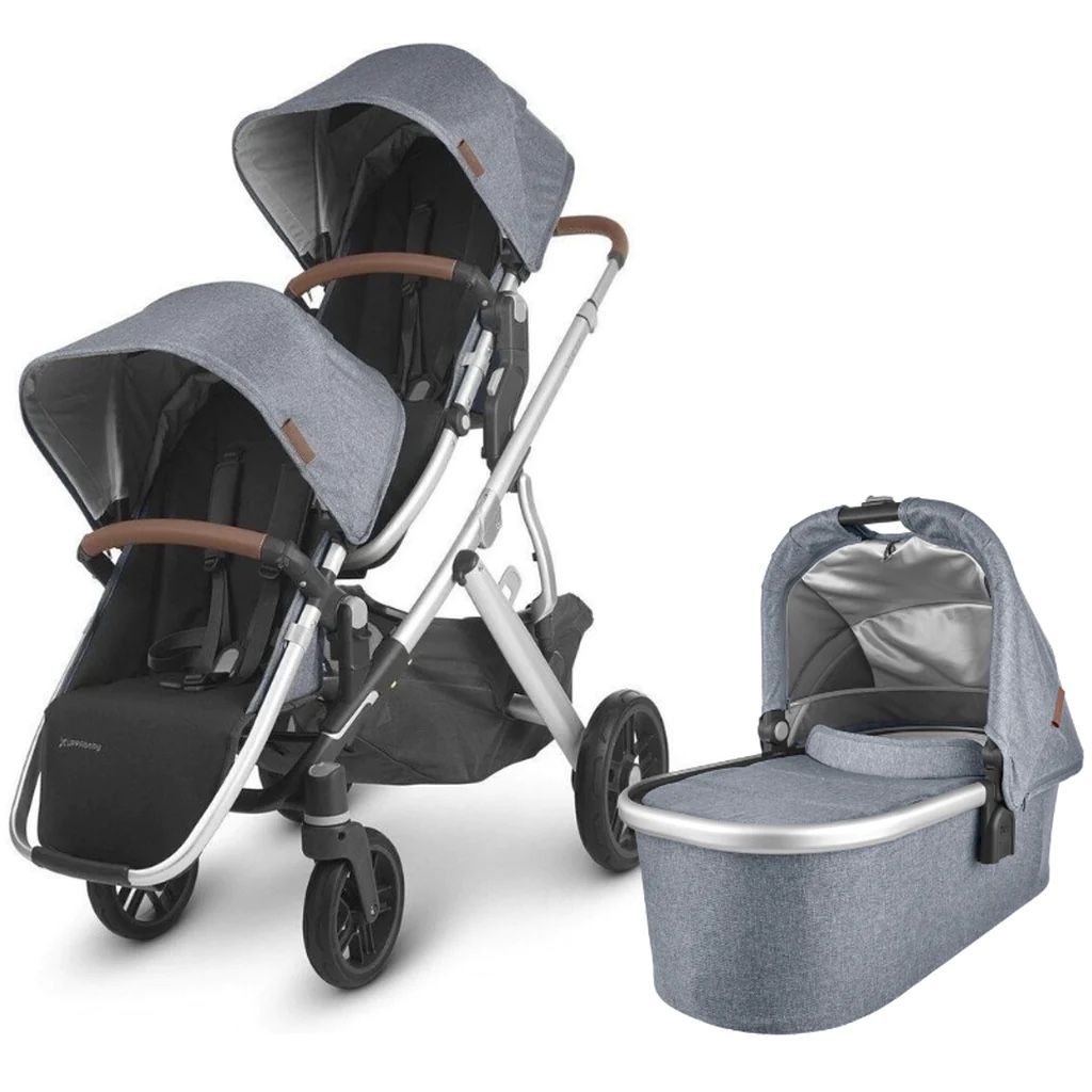 Great condition dbl stroller with attached parts for car seats. Bassinet included. Retails new for $2200