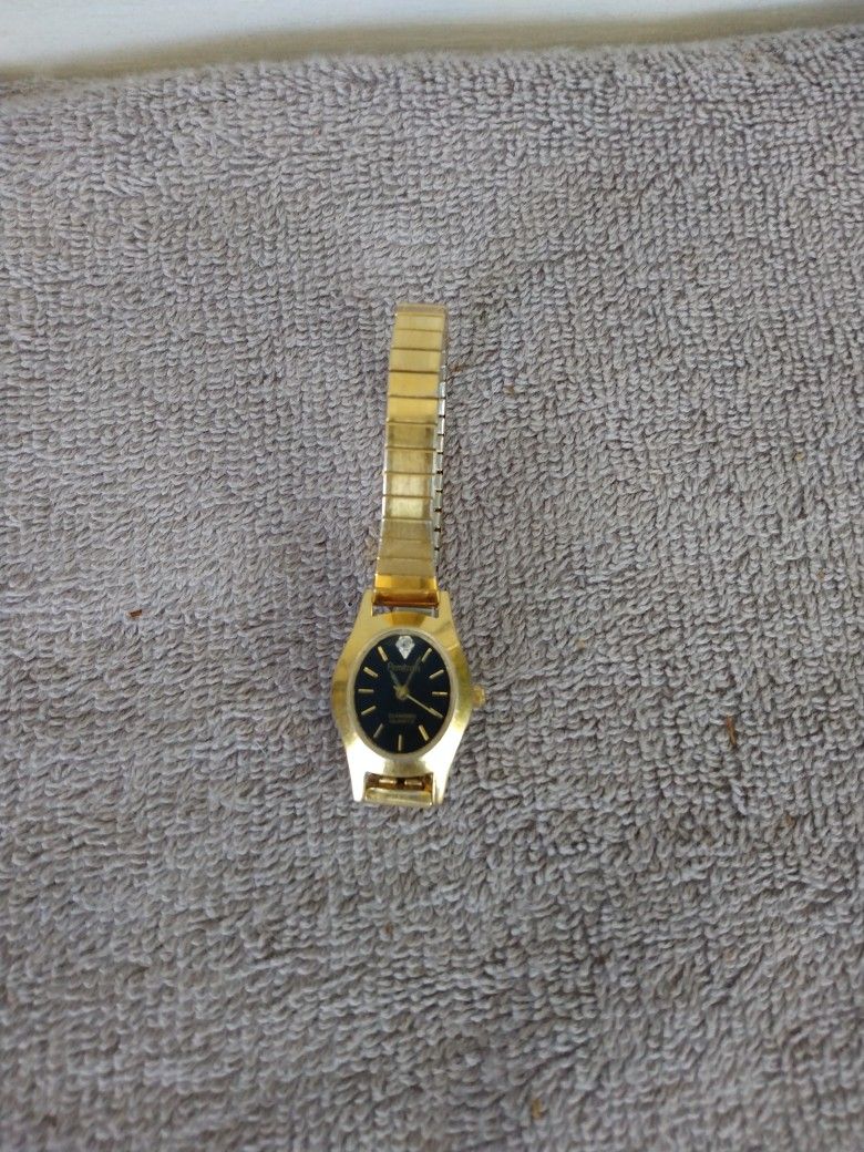 Armitron Diamond Quartz Analog Gold Tone Wrist Watch 3" Flat Wrist Band