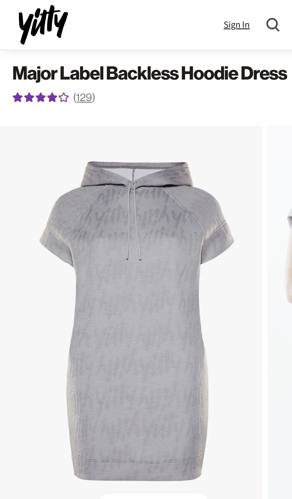 Sweatshirt style dress features an all over YITTY motif. It’s designed with a cutout back. Can’t buy this color on the website anymore. Worn one time. Yitty Website sales this same style in grey for $84.95.