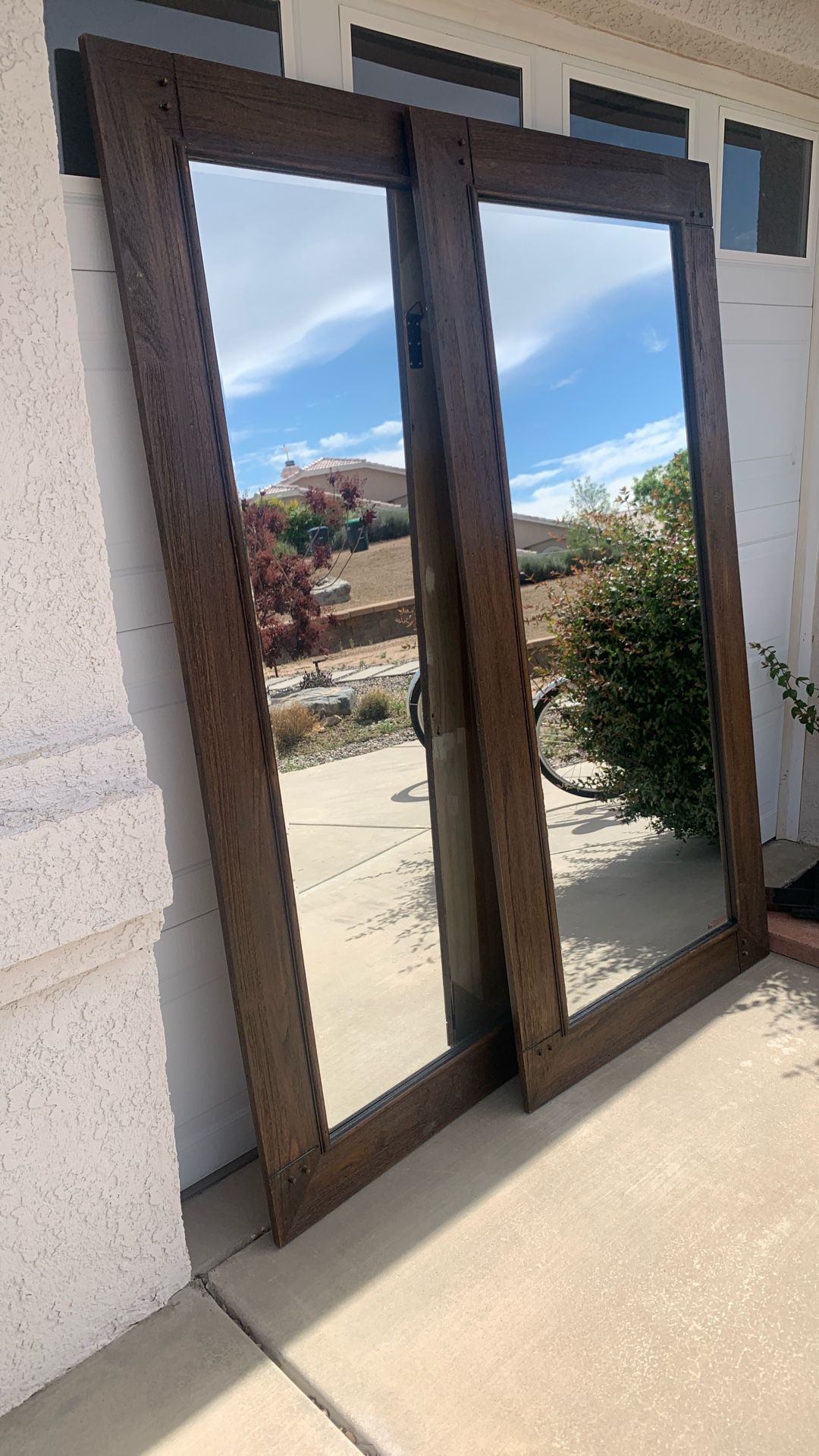 Two full length standing or hanging decorative closet mirror 35” w 76” h (wood framed) like new! $100 for both or will sell separately!