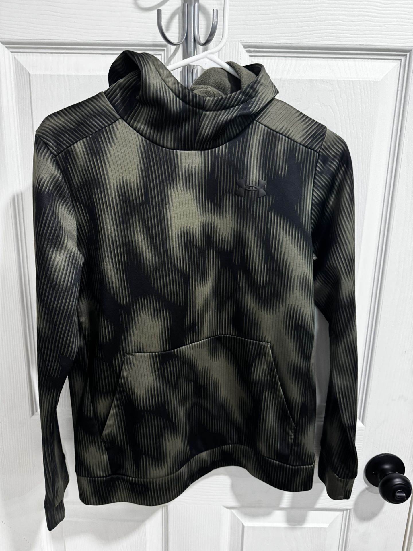 Both in Great condition Under Armour is black and dark green color the green is darker than pics are showing more like the third pic It is about 18” across chest and about 23.5 from top of shoulder to bottom hem The And 1 hoodie is Black and grey shades About 18” across chest and about 24.5 from top of shoulder to bottom hem No flaws Can meet at 5023 Granbury
