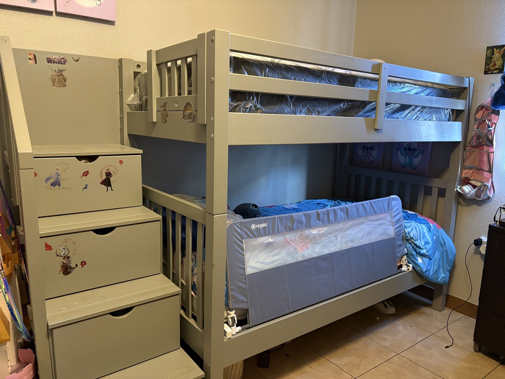 I'm trying to get rid of my kids bunk bed, they've outgrown it. It's in good condition, I'm asking for half the price i purchased it for, I'm also willing to negotiate. Only serious buyers, no trades! Selling it without the mattresses.