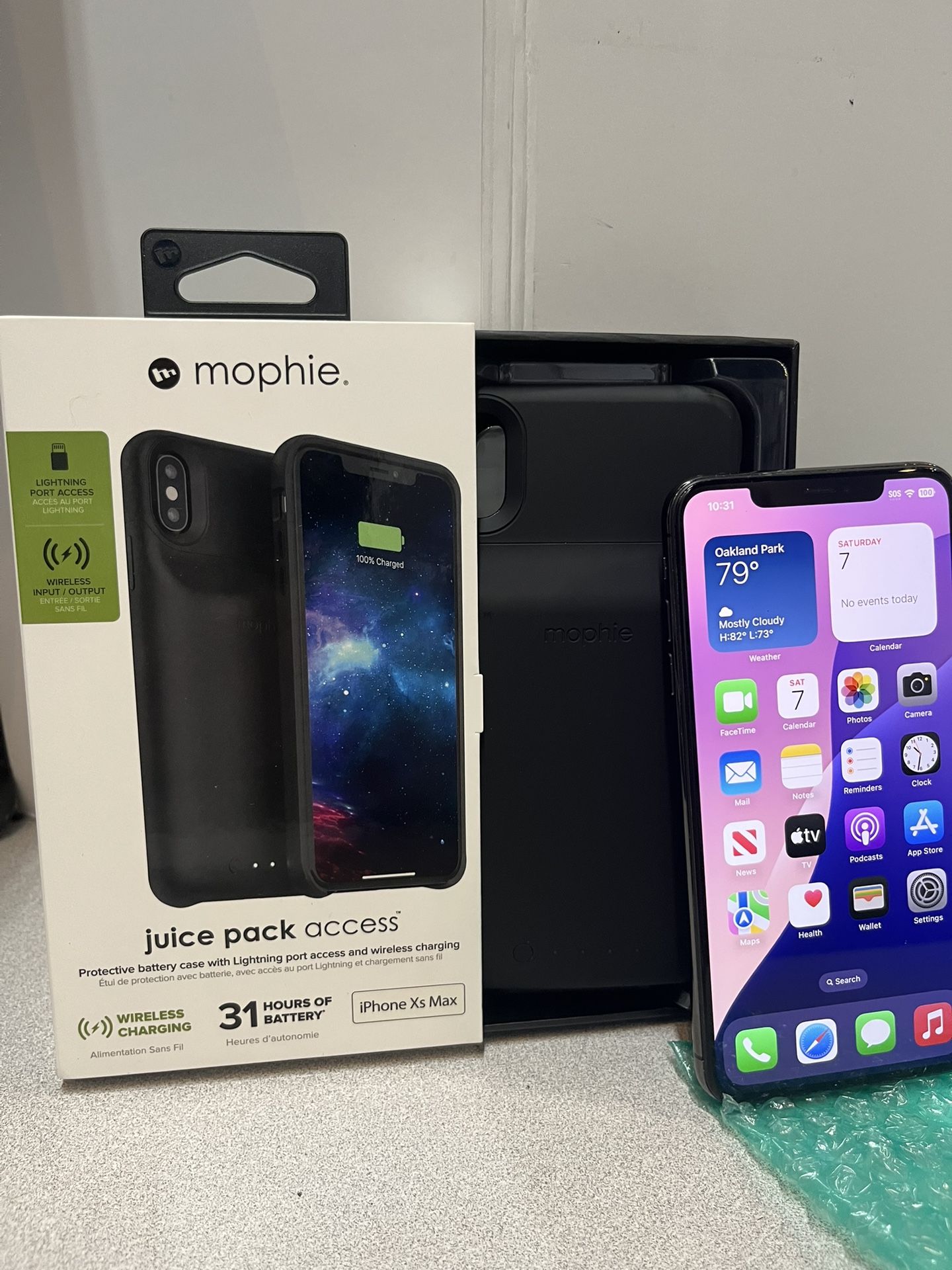 Apple iPhone XS MAX 256GB UNLOCKED -Black with new Mophie Charging Case The iPhone in Very Good+ condition, fully functional and works perfect with no issues. iOS in pic. Works with all carriers ready for new user. Includes lightning cable only. Price firm Oakland Park 33334 pick up or can ship
