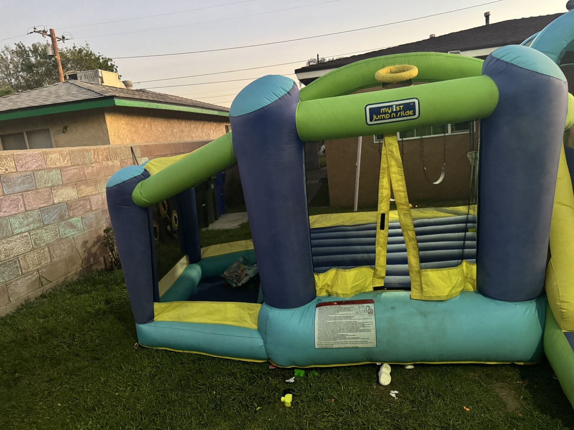 Comes with slide, ball pit on the side, and a basketball hoop. Used but still in good condition My son out grew it WITH BLOWER Neet it gone ASAP I am moving so im willing to negotiate