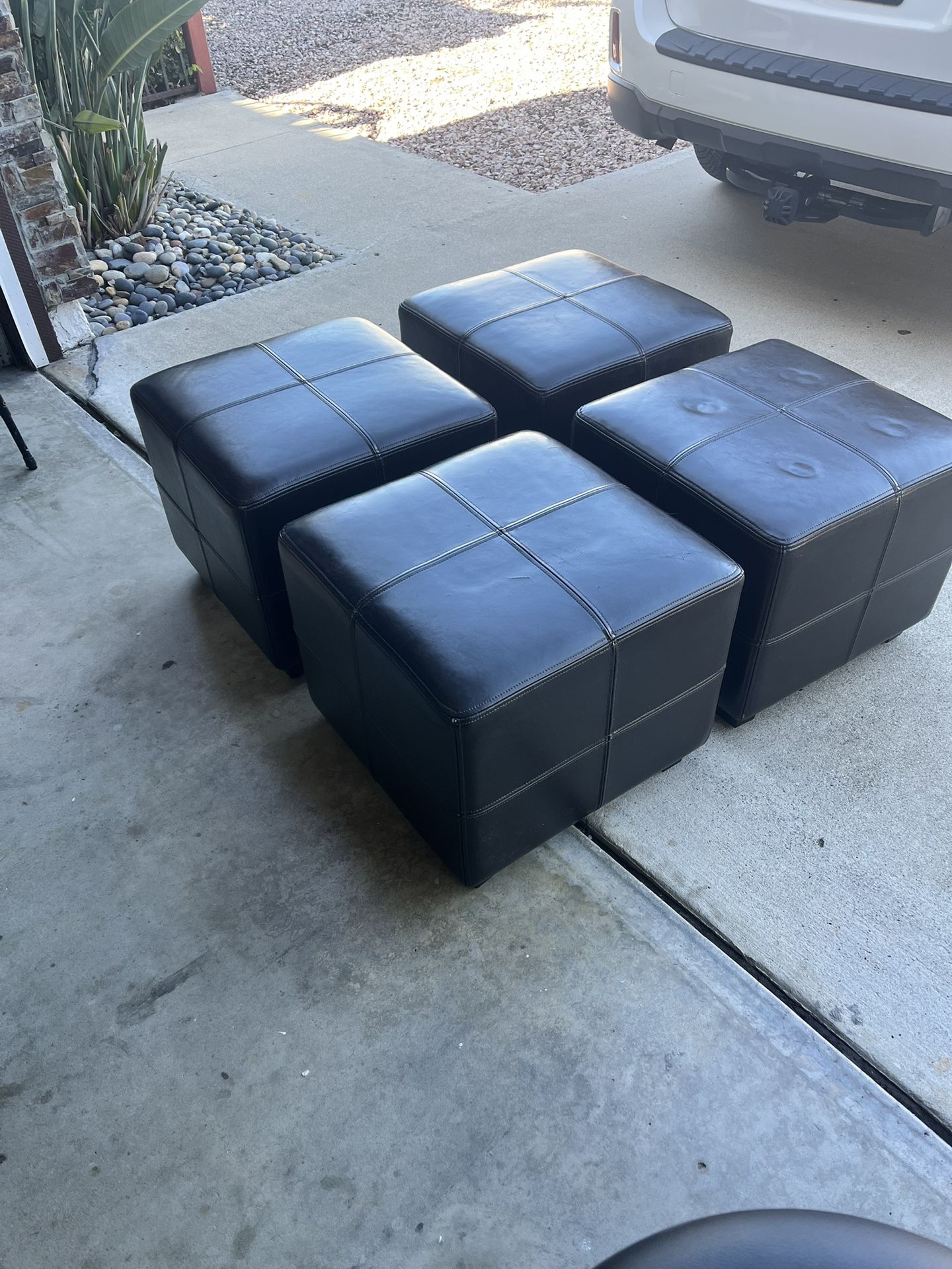 Good condition. Leather ottomans. Four each. 20” x 20” x 17”, 17” tall. All four for $20.00 We are Rancho Bernardo/92127 zip Thanks for looking.