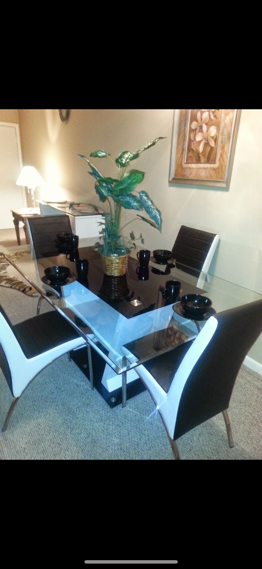 Dining room table set glass table and chest to go with it. 1,200 obo .
