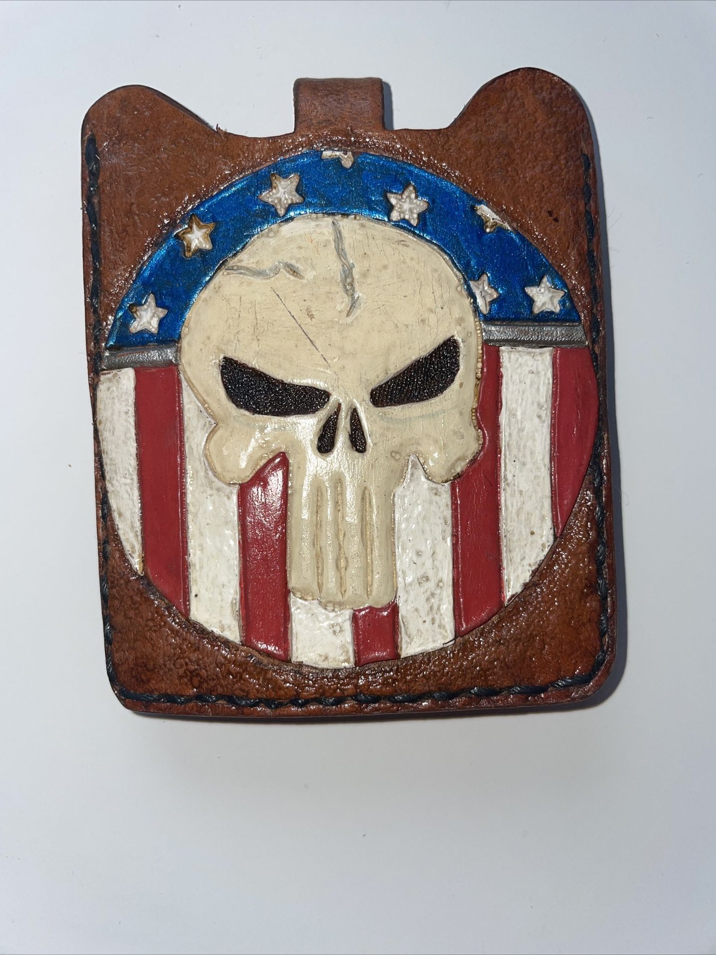 Genuine Leather Handmade Punisher Wallet American Flag Skull Wallet Clip