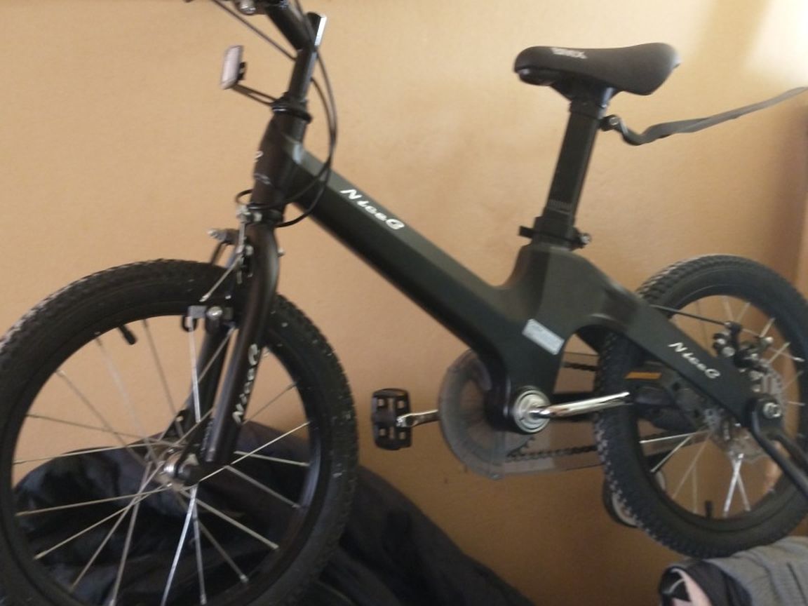 Light weight bike with training wheels. Disc brake in the back, will stop on a dime.